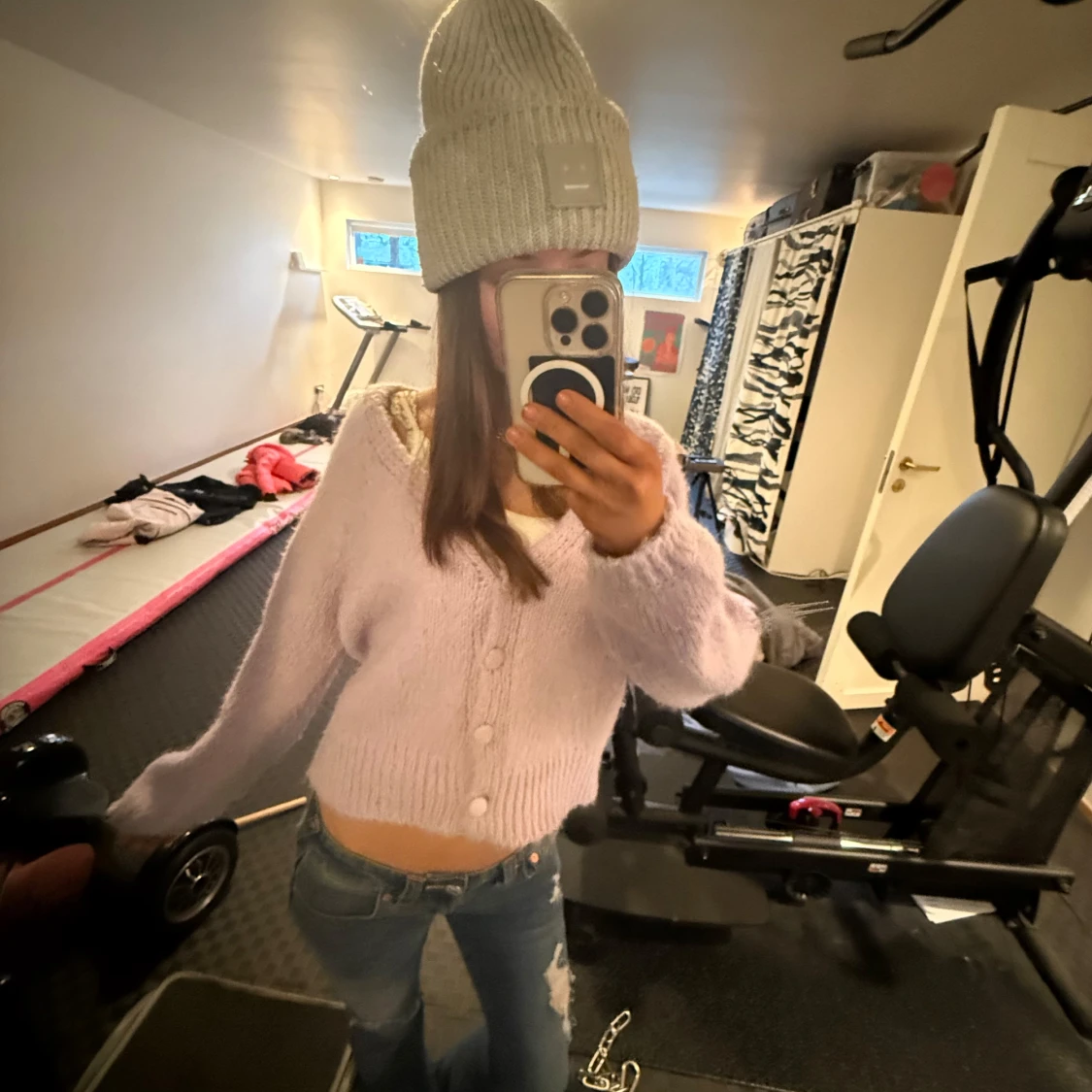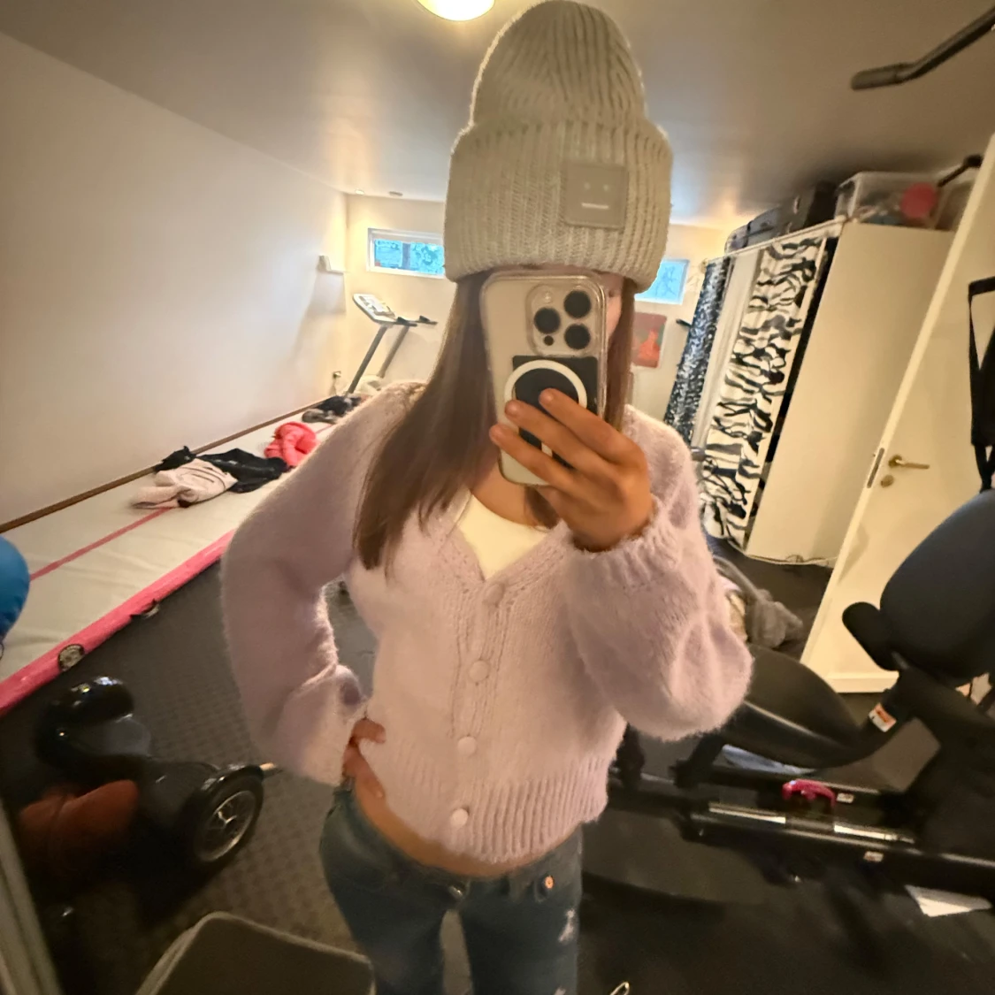 Säljer en söt ljuslila kofta med knappar framtill. Koftan har en snygg passform och långa ärmar, perfekt för en avslappnad stil. Den är mjuk och bekväm, idealisk för kyligare dagar.