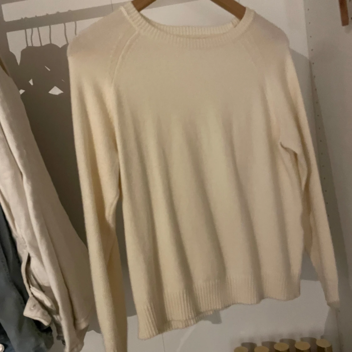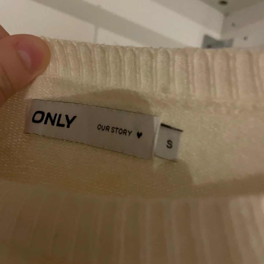 Kräm vit/beige tun stickad tröja ifrån only i storlek S, använd få gånger men ser ut som ny, jättemysigt material! förlåt för dåliga bilder, kan skicka bättre om det behövs ❤️