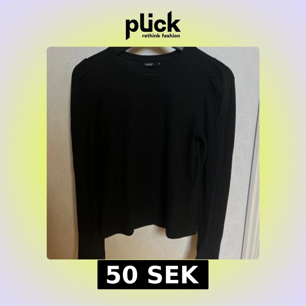 Snygg svart långärmad topp från ONLY med en ribbad struktur. Perfekt för en stilren look. Toppen har en rund halsringning och är tillverkad i ett mjukt material.