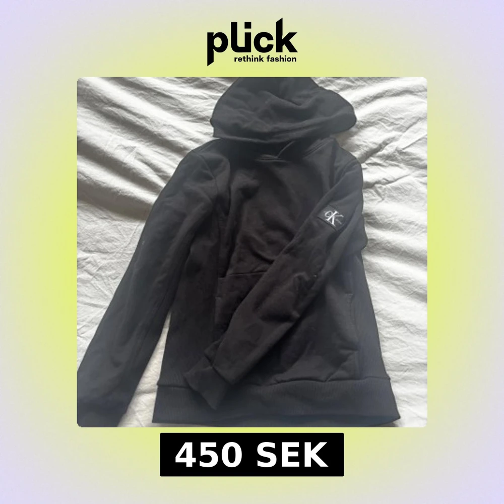 Snygg svart hoodie från Calvin Klein Jeans med en klassisk design. Den har en stor huva och en praktisk magficka. Perfekt för en avslappnad stil. Vi säljer den på grund av att den är för liten. Ny skick, använd nån gång. Storleken är 12 år, motsvarar ungefär stl 152.