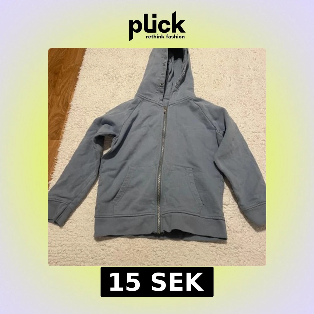 Säljer en bekväm blå huvtröja med dragkedja och fickor framtill. Perfekt för en avslappnad stil. Tröjan har långa ärmar och en praktisk huva.