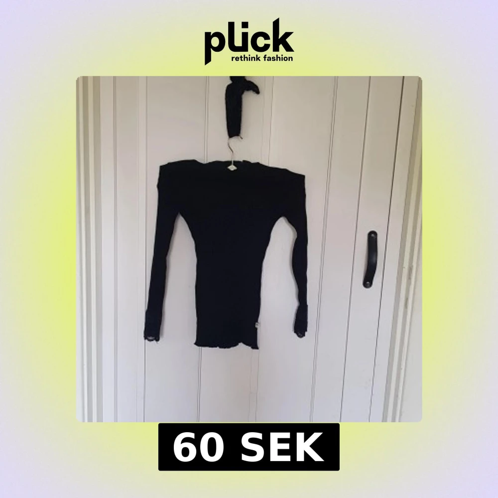 Svart långärmad tröja från POMPdeLUX i ribbad bomull med snygga spetsdetaljer vid ärmsluten. Tight passform som sitter snyggt och ger en stilren look. Perfekt att matcha med jeans eller kjol för en trendig outfit.