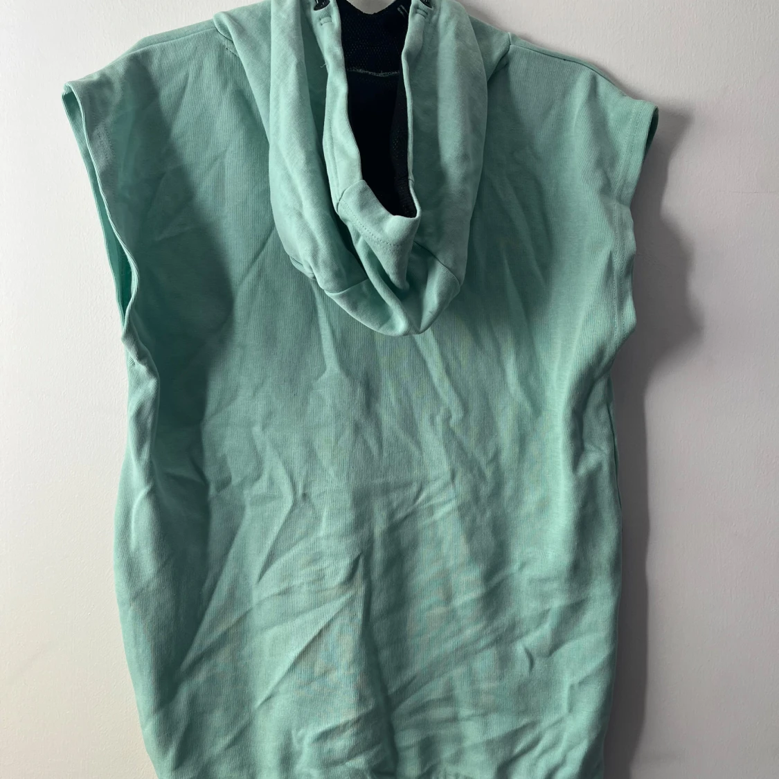 Snygg mintgrön ärmlös hoodie från F&F med svart mesh-detalj på sidorna och magficka. Tröjan har huva och tryckt logga på bröstet. Perfekt för en chill och sportig look. Tillverkad i mjuk bomullsmix.