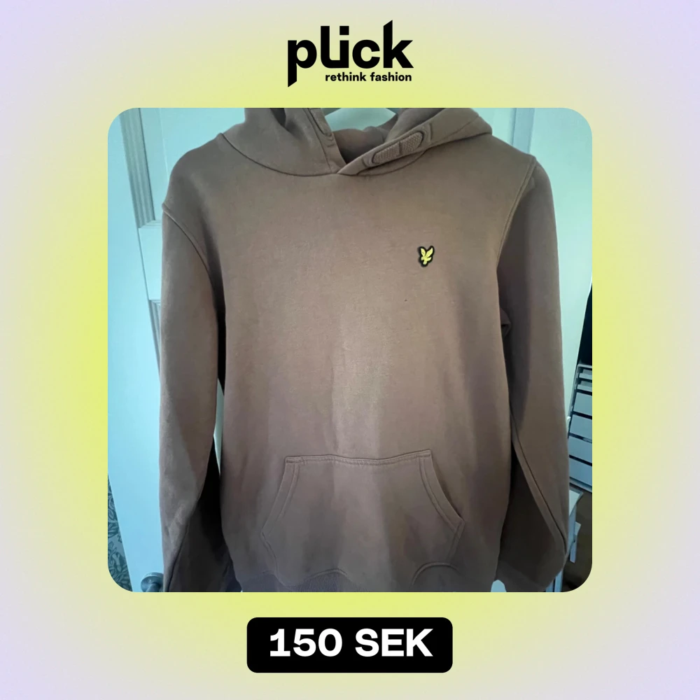 Säljer en brun Lyle Scott hoodie i bra skick med en gul logga på bröstet. Den har en klassisk känguruficka och en bekväm huva. Perfekt för höst och vinter, och passar till vardags eller chillkvällar. Skön och stilren design!