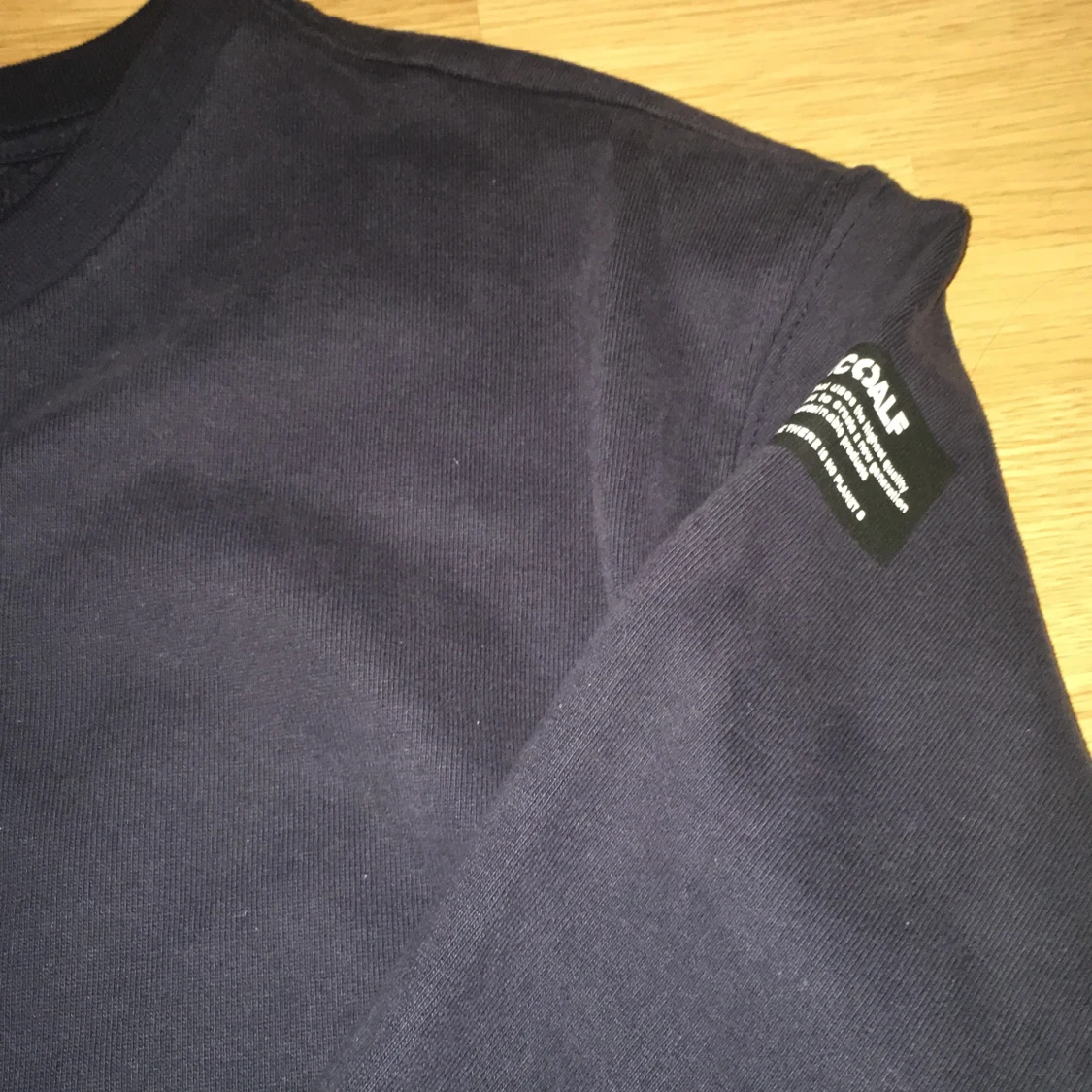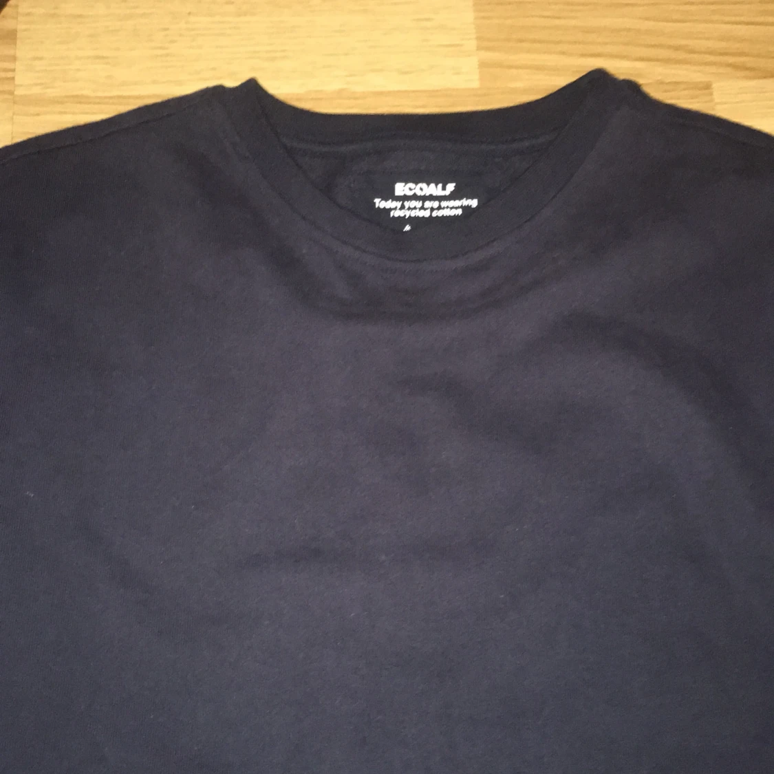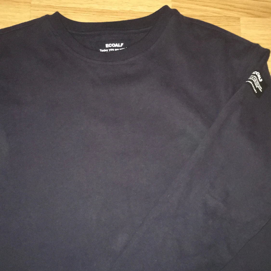 Säljer en svart långärmad tröja från Ecoalf med rund hals och en diskret etikett på ärmen. Tröjan är tillverkad i mjuk bomull och har en clean, enkel design som funkar till många olika stilar. Perfekt för dig som gillar minimalistiskt och hållbart mode.