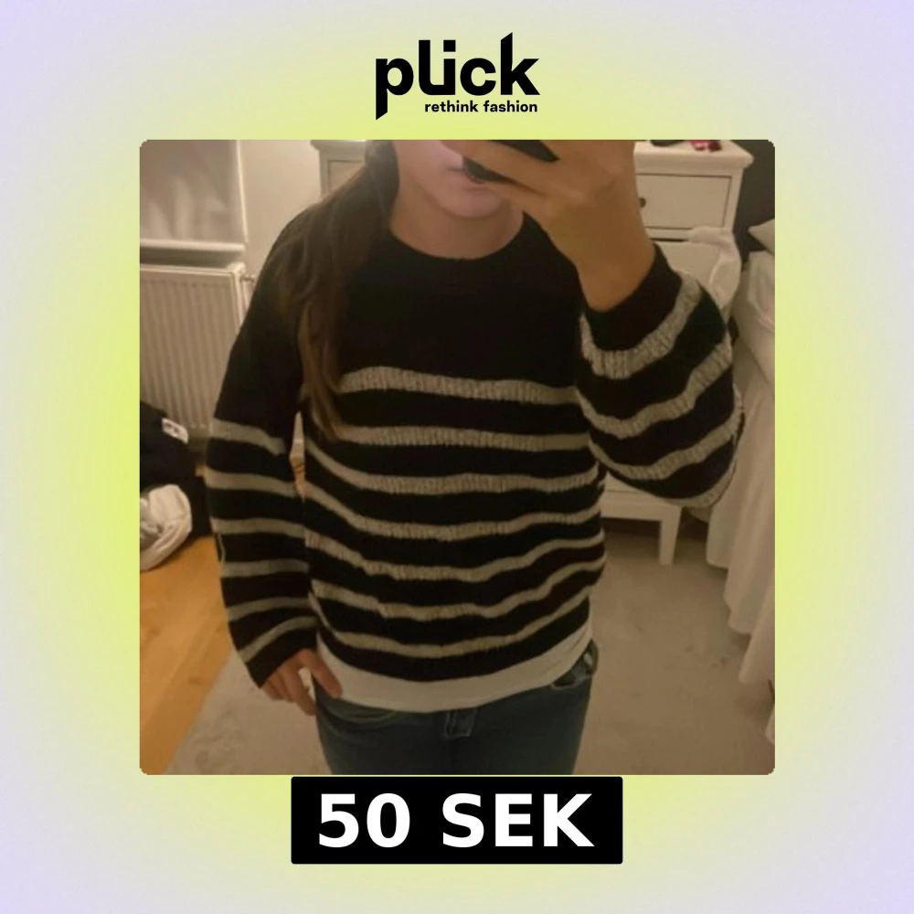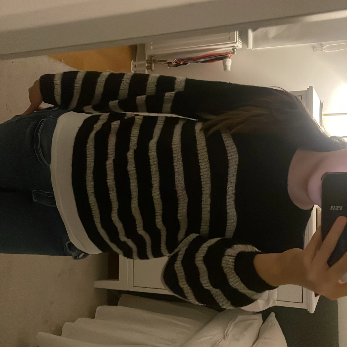 Säljer en svart stickad tröja från MNG med vita horisontella ränder💗