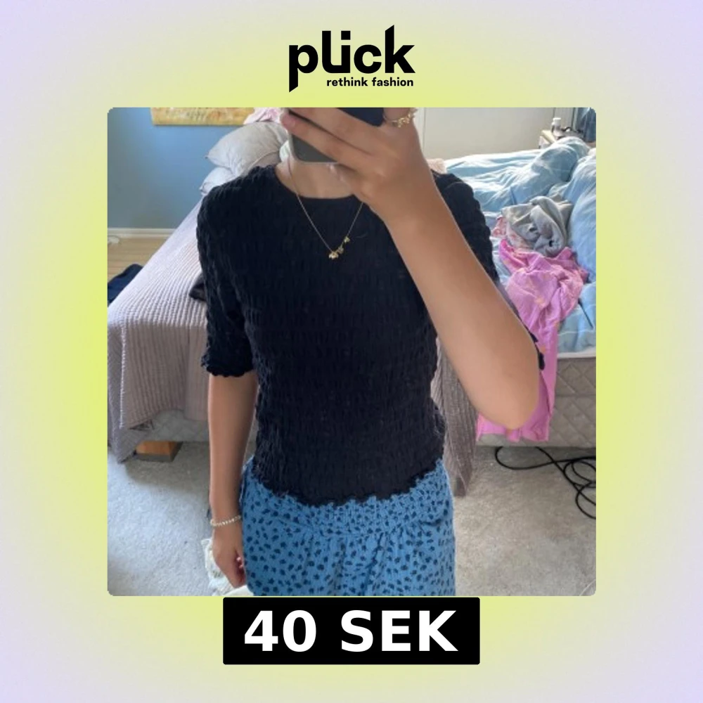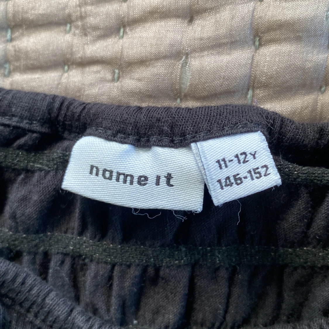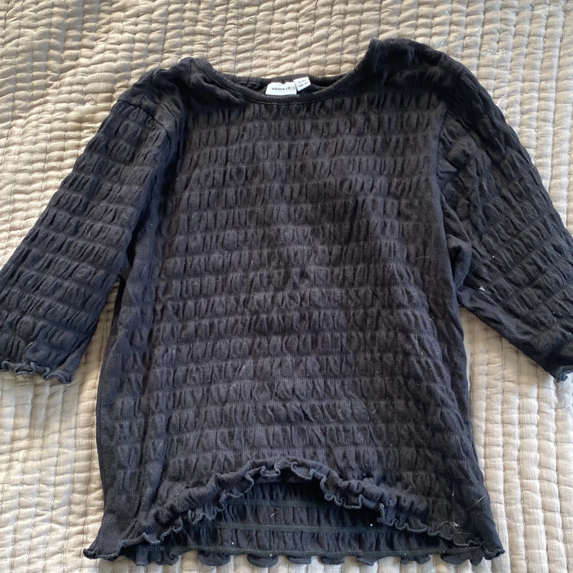 Svart topp från Name It med coolt strukturerat tyg och lätt rynkade kanter. Modellen har trekvartsärm och en tight passform som sitter snyggt. Perfekt för dig som gillar en enkel men ändå unik stil.
