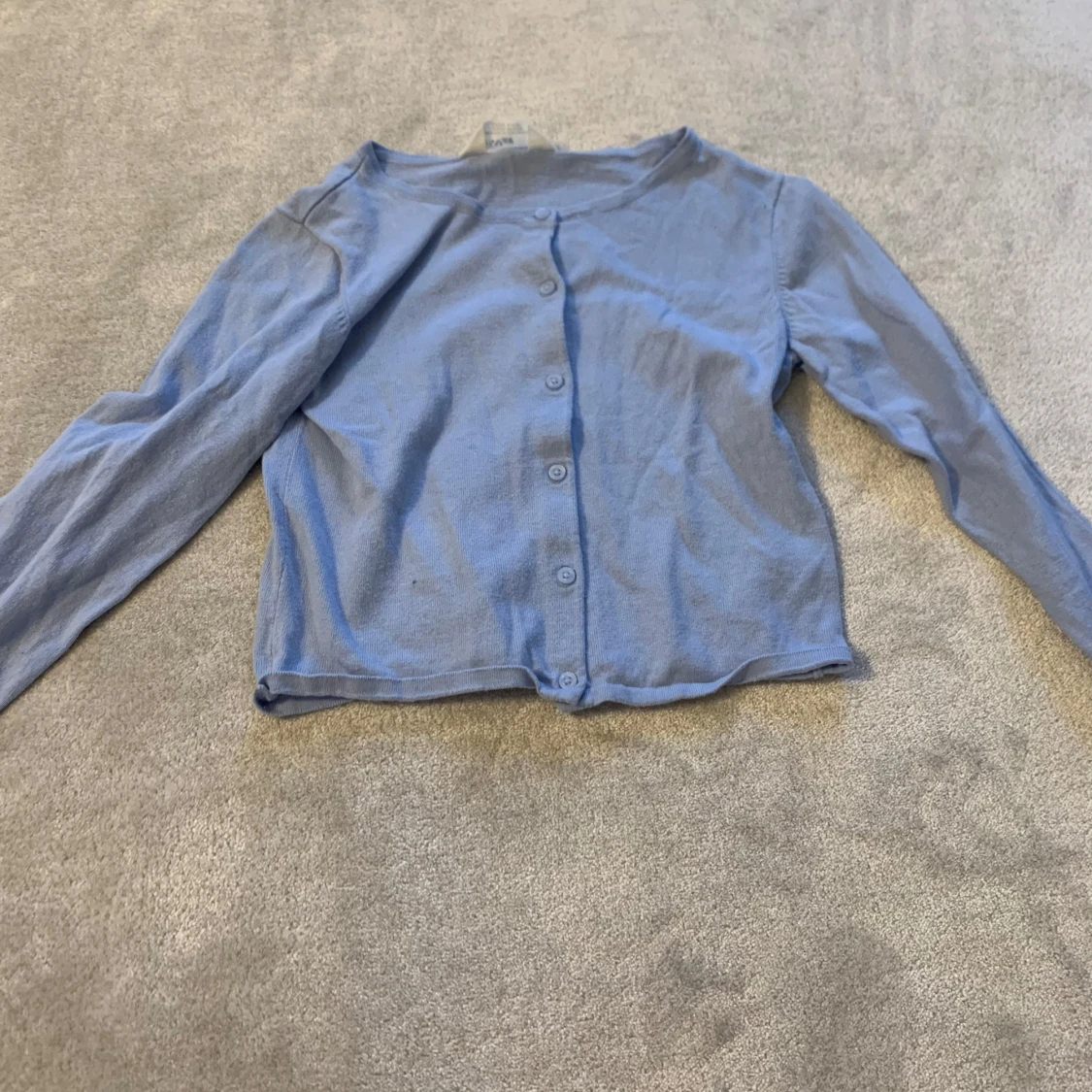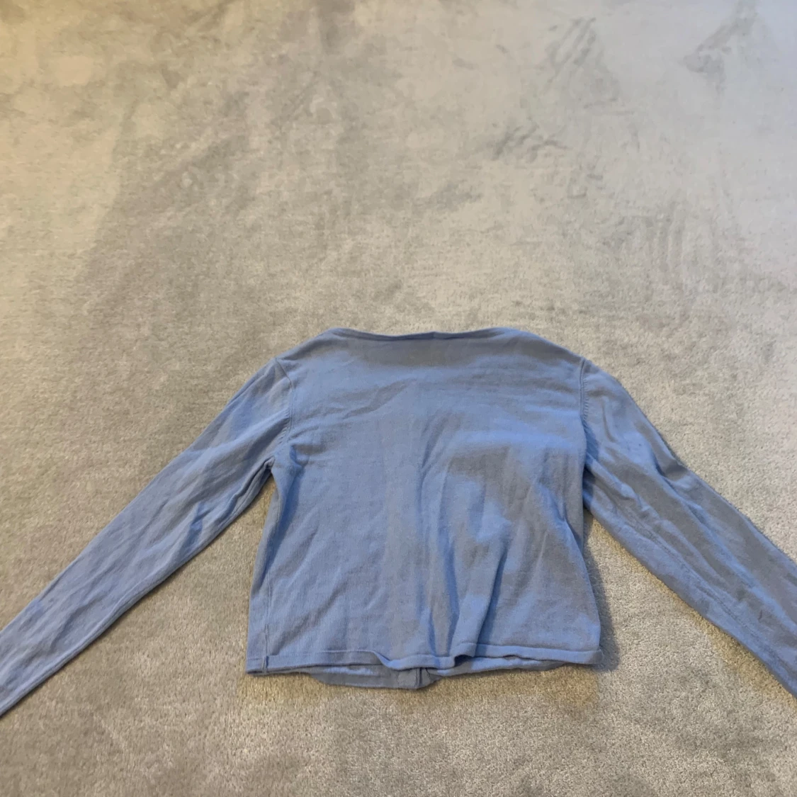 Säljer en enkel och stilren blå kofta med knappar framtill. Koftan har långa ärmar och en klassisk passform. Perfekt för lager-på-lager under kyligare dagar.