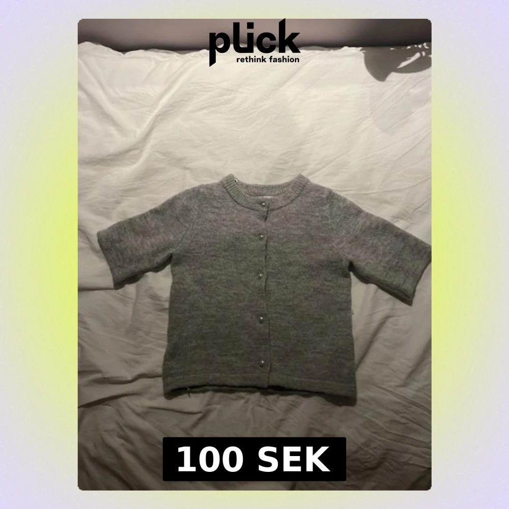 Mysig grå kofta med korta ärmar och rund hals. Koftan har knappar framtill och är stickad i ett mjukt material som passar perfekt för lager på lager. Enkel och stilren design som funkar till det mesta.