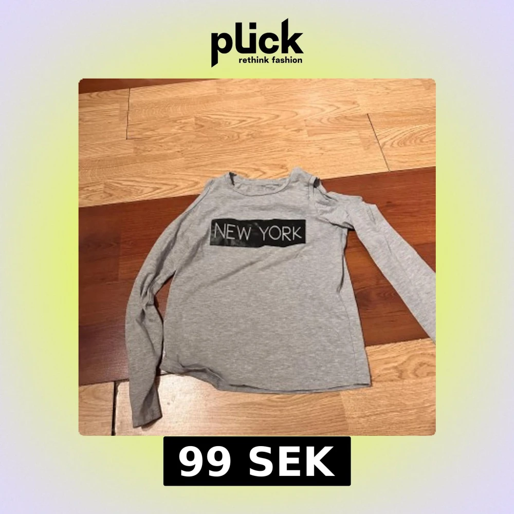Säljer en grå långärmad topp från Mywear Young med svart och vitt 'NEW YORK'-tryck på bröstet. Tröjan har en cut-out detalj vid axeln som ger en cool look. Perfekt för dig som gillar streetstyle.