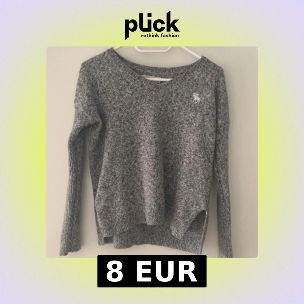 Mysig gråmelerad stickad tröja från Abercrombie med v-ringad hals och lång ärm. Tröjan har en liten vit logga broderad på bröstet och ribbade muddar vid ärmslut och nederkant. Perfekt för chill dagar och när du vill vara extra comfy.