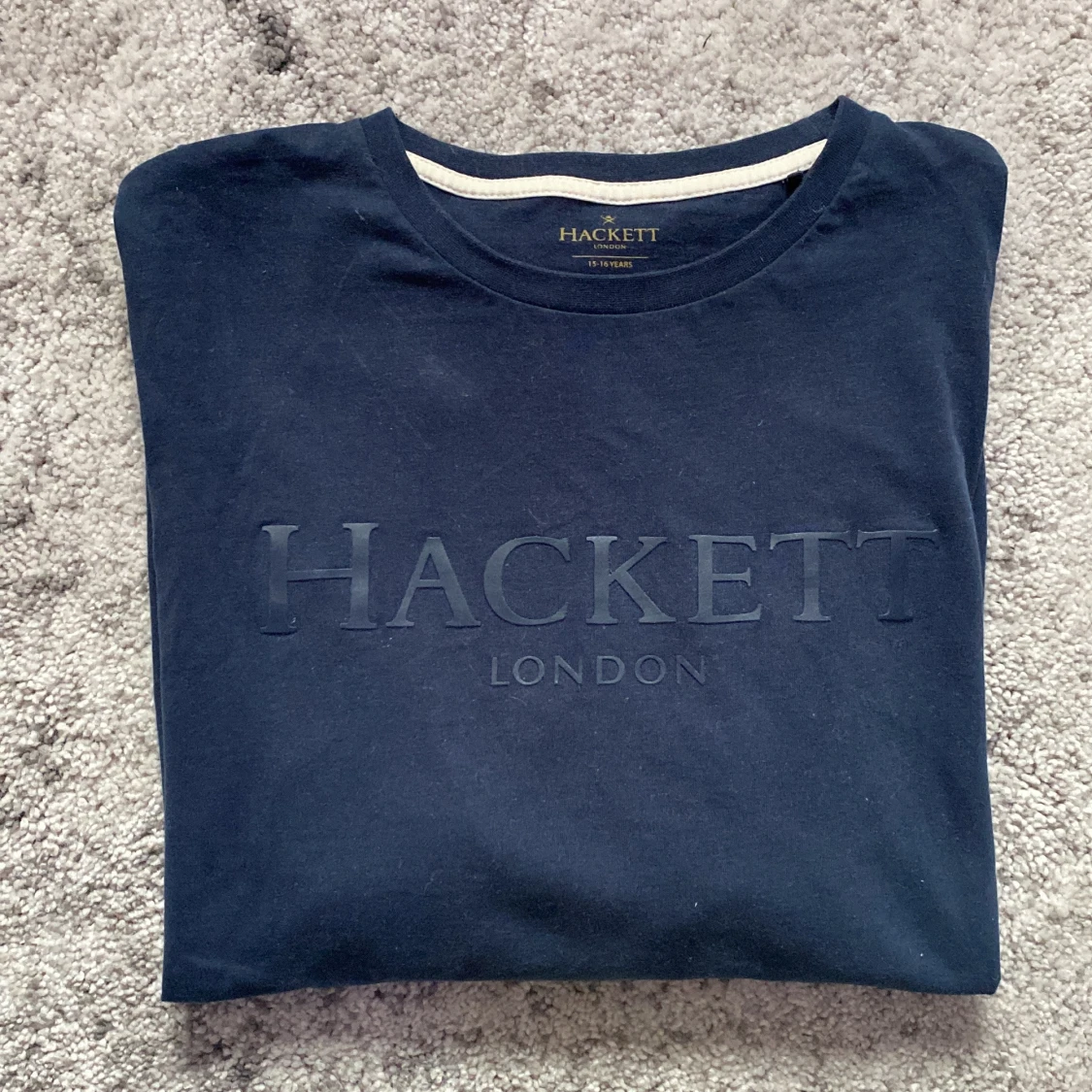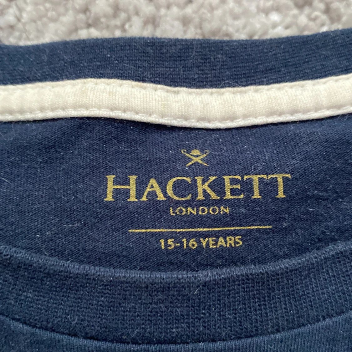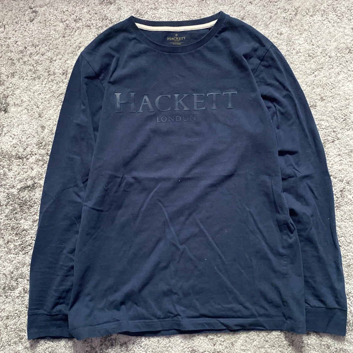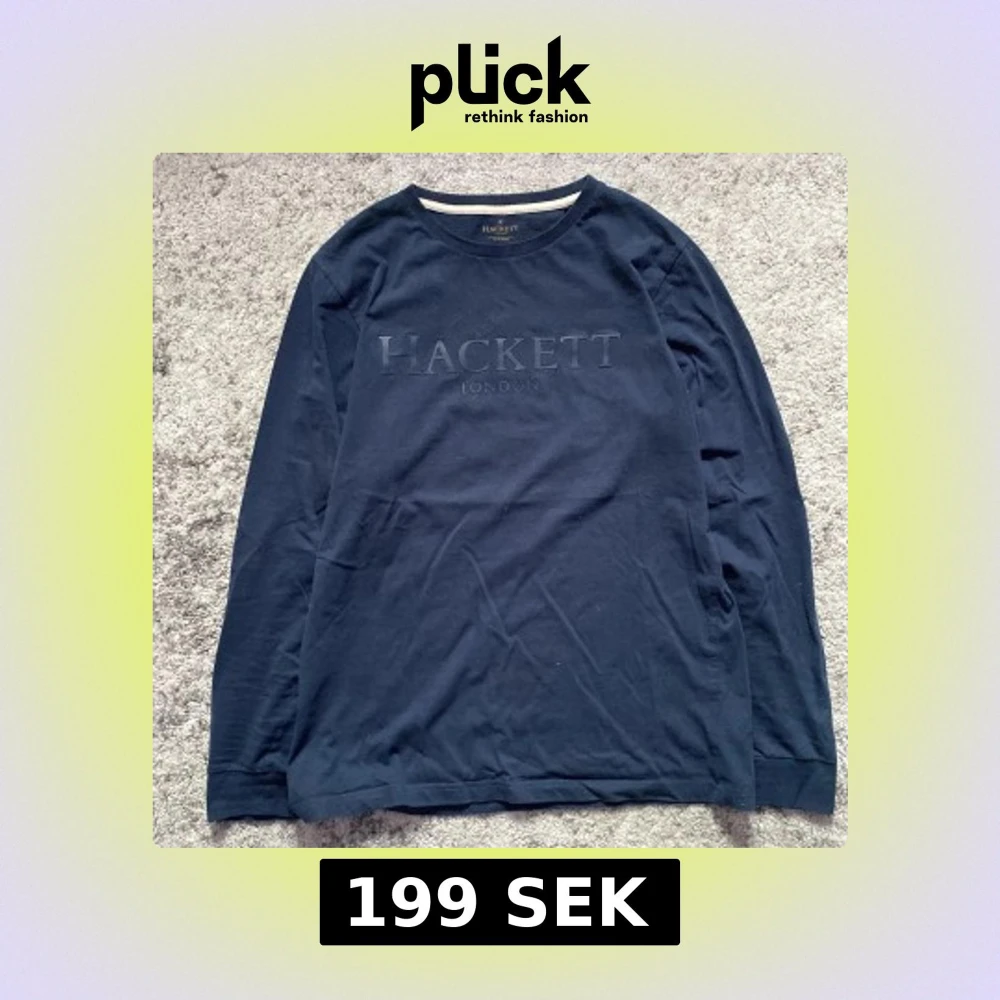 Snygg mörkblå långärmad tröja från Hackett London med diskret logga framtill. Tröjan har rund halsringning med vit detalj på insidan och är gjord i mjuk bomull. Perfekt för dig som gillar stilrena och klassiska plagg.