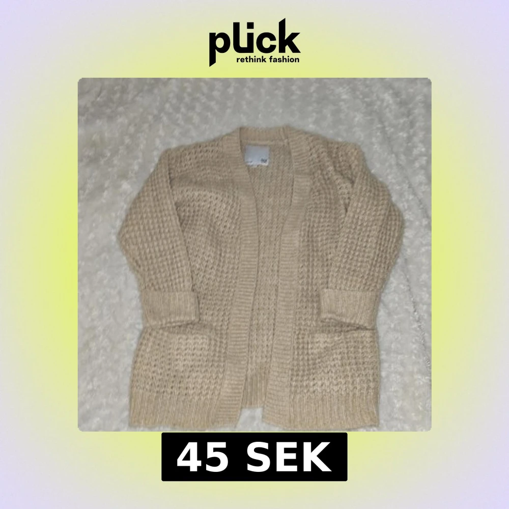 Mysig beige stickad kofta från 157. Perfekt för kyliga dagar med sin öppna design och långa ärmar. Koftan har ett fint stickat mönster och ribbade kanter som ger en stilren look.