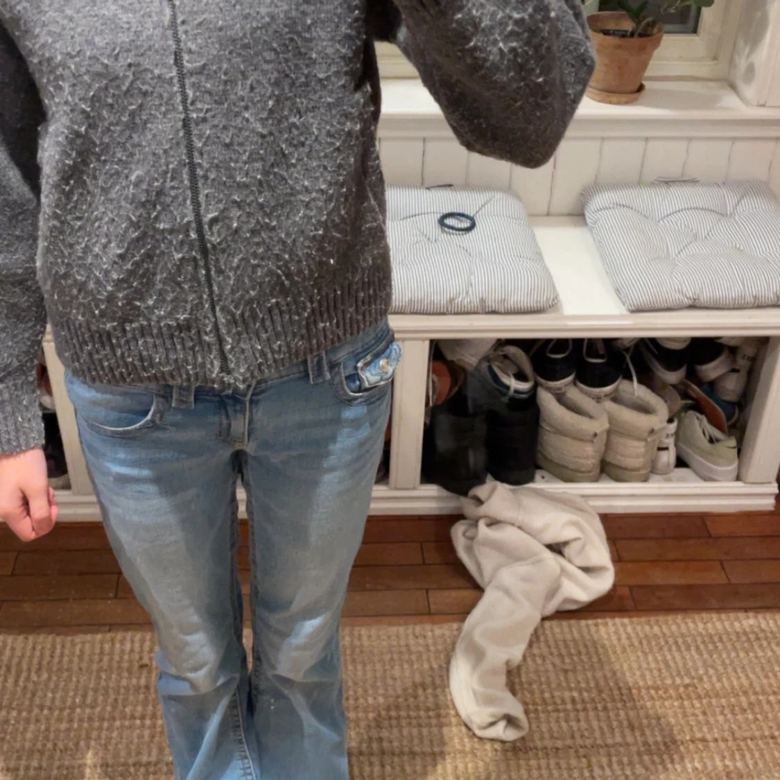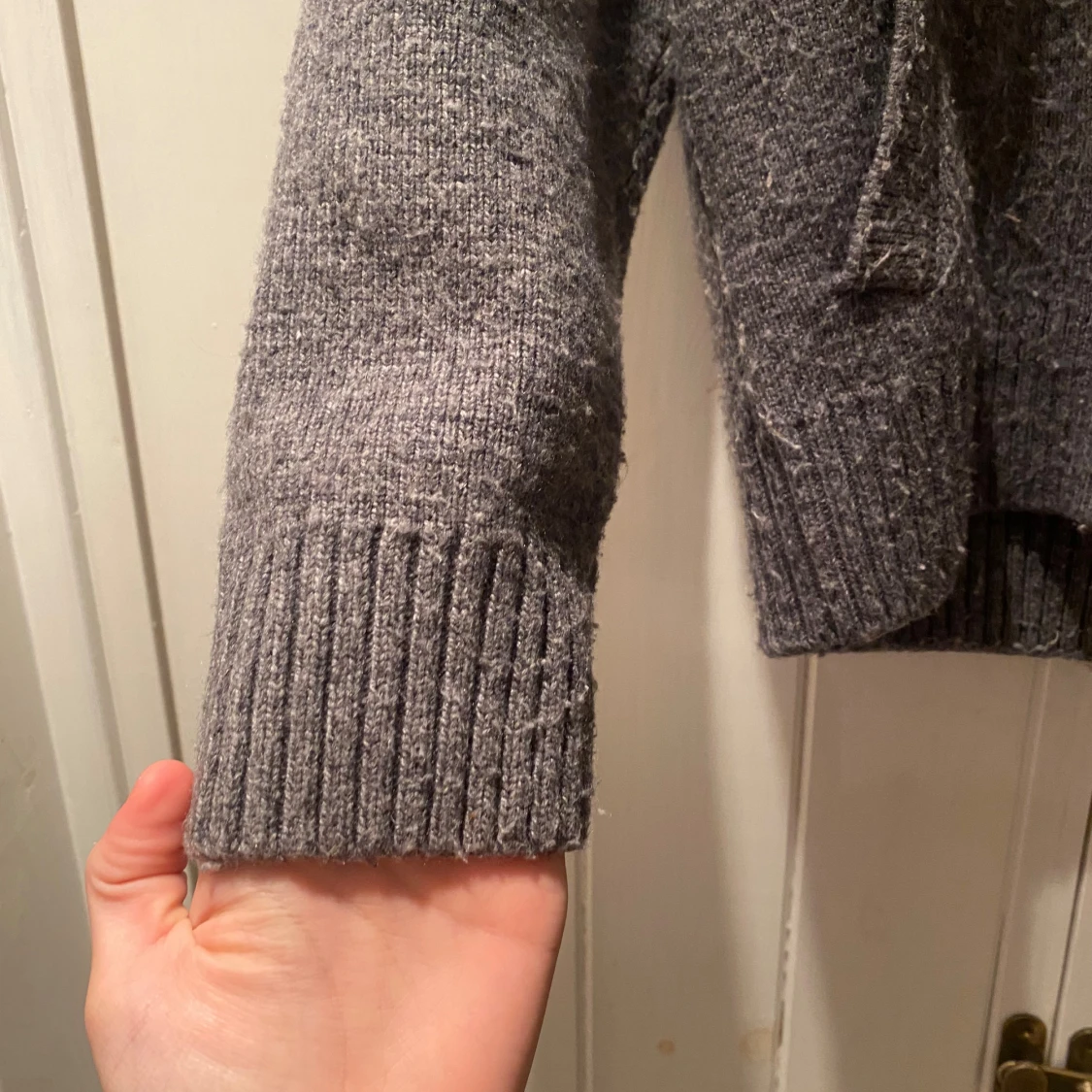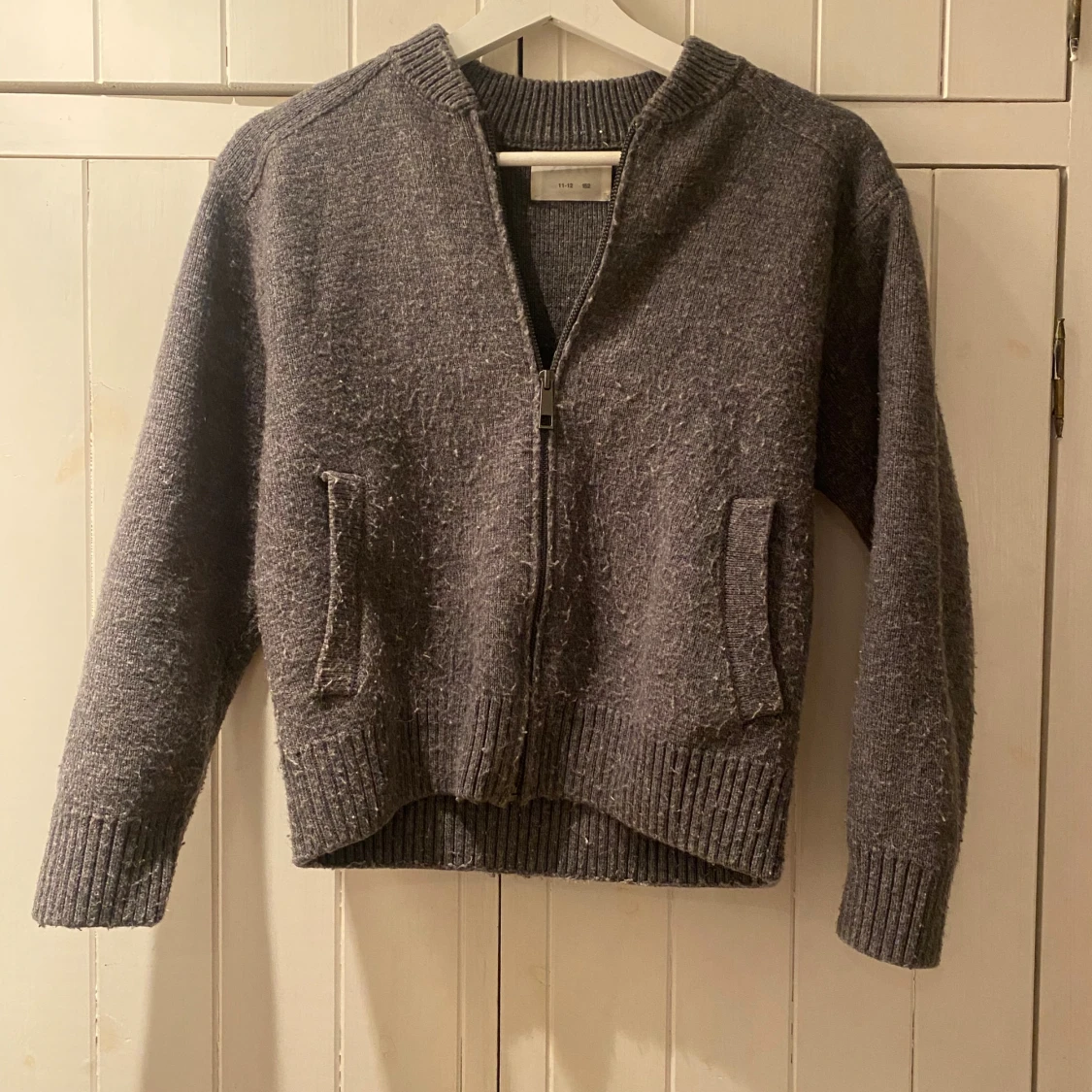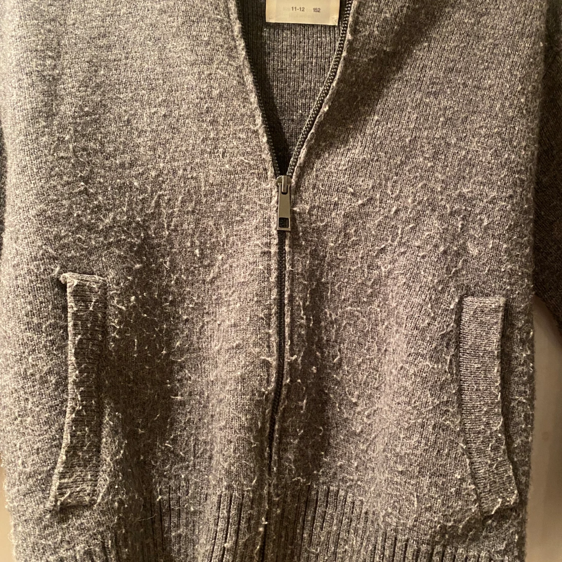 Mysig grå stickad kofta med dragkedja framtill och två fickor. Koftan har ribbade muddar vid ärmslut och nederkant, samt en rak passform. Perfekt för kyliga dagar och enkel att matcha med jeans eller kjol. GANSKA SÅ NOPRIG SE PÅ BILD 3 och 4