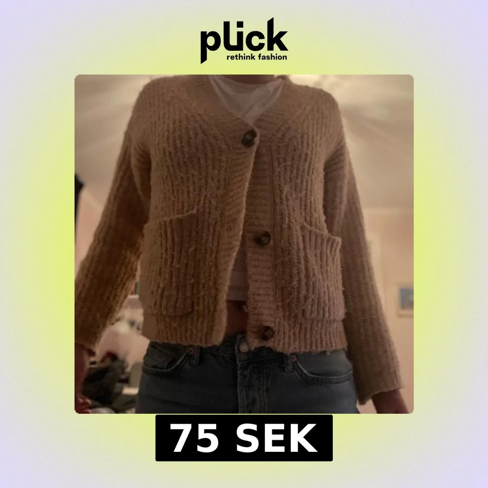 Mysig beige stickad kofta med stora knappar från Zara. Storlek 152/xs