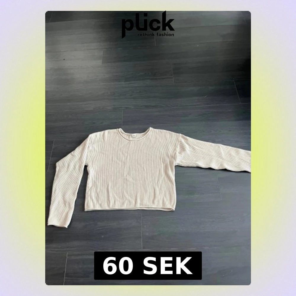 Säljer en beige långärmad tröja från Uniq Young i ribbad design. Tröjan har en rund halsringning och är croppad i modellen, vilket ger en modern och chill vibe. Perfekt för dig som gillar enkla och stilrena plagg med lite edge.