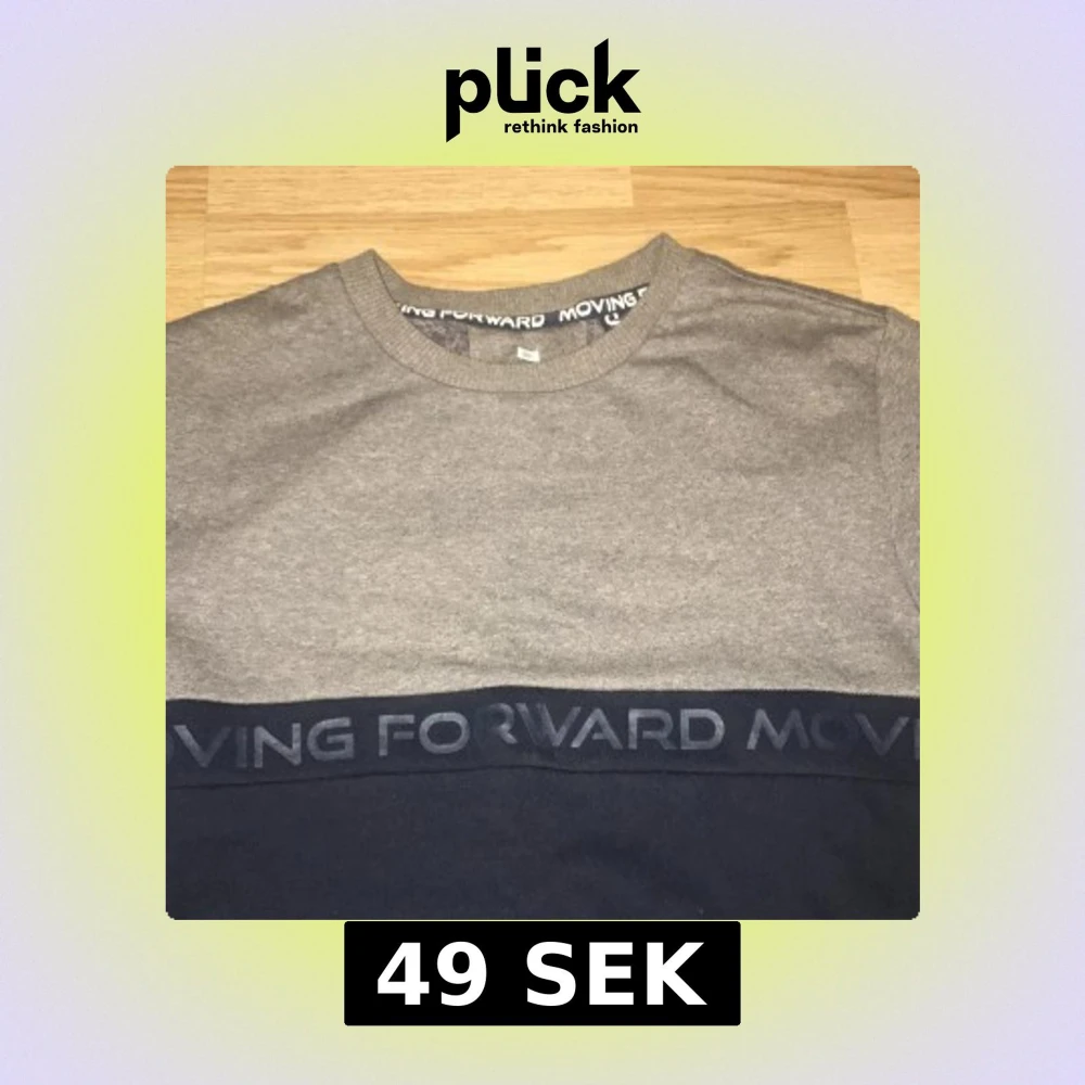 Snygg tvåfärgad tröja från Moving Forward i grått och mörkblått. Tröjan har rund hals och ett band med texten 'MOVING FORWARD' över bröstet. Tillverkad i mjuk bomull, perfekt för chill dagar. Långärmad och med normal passform.