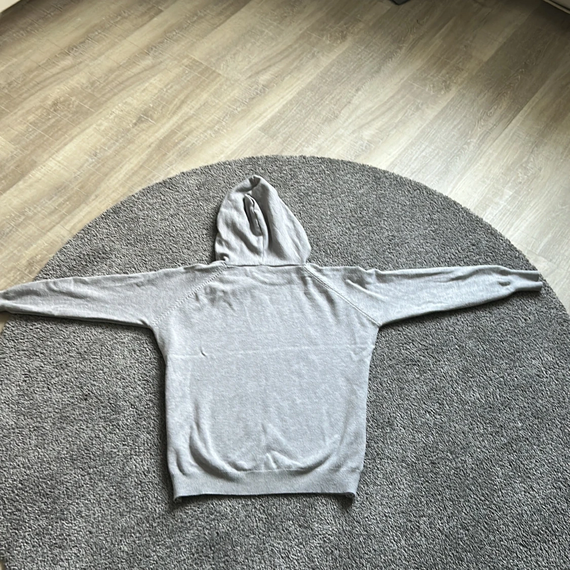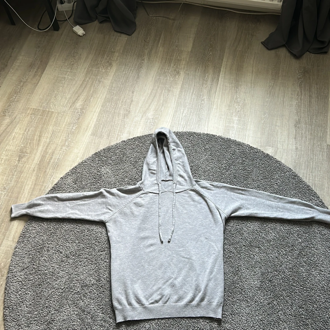 Ljusgrå hoodie med luva och snörning