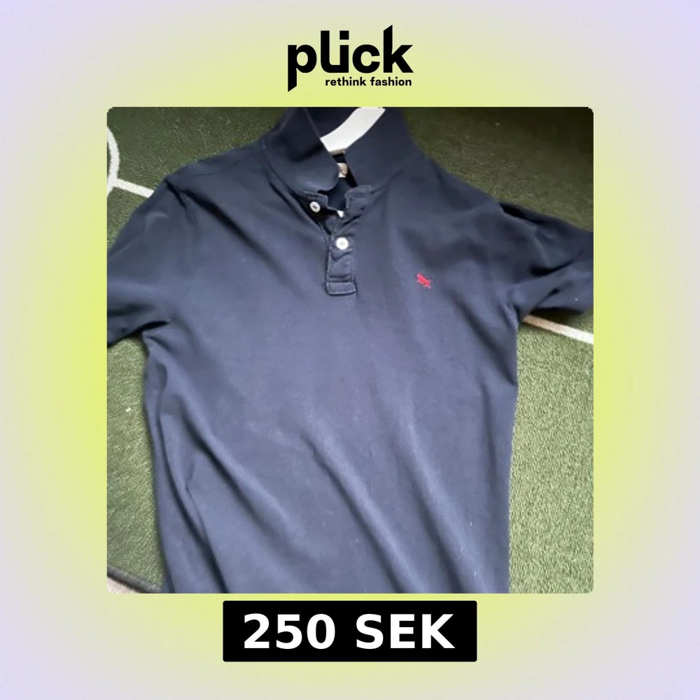 Säljer en stilren mörkblå pikétröja från L.O.G.G. med klassisk krage och knäppning framtill. Tröjan har en liten röd broderad detalj på bröstet och är gjord i mjuk bomull. Perfekt för en clean och avslappnad look.