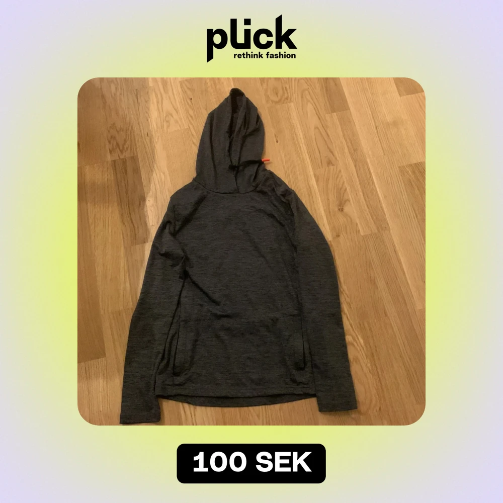 Säljer en mörkgrå hoodie i mycket bra skick. Den är tillverkad av 85% polyester och 15% elastan, vilket gör den både bekväm och stretchig. Perfekt för höst och vinter med sin långa ärmar och mysiga huva. Passar bra för träning eller en avslappnad dag hemma.