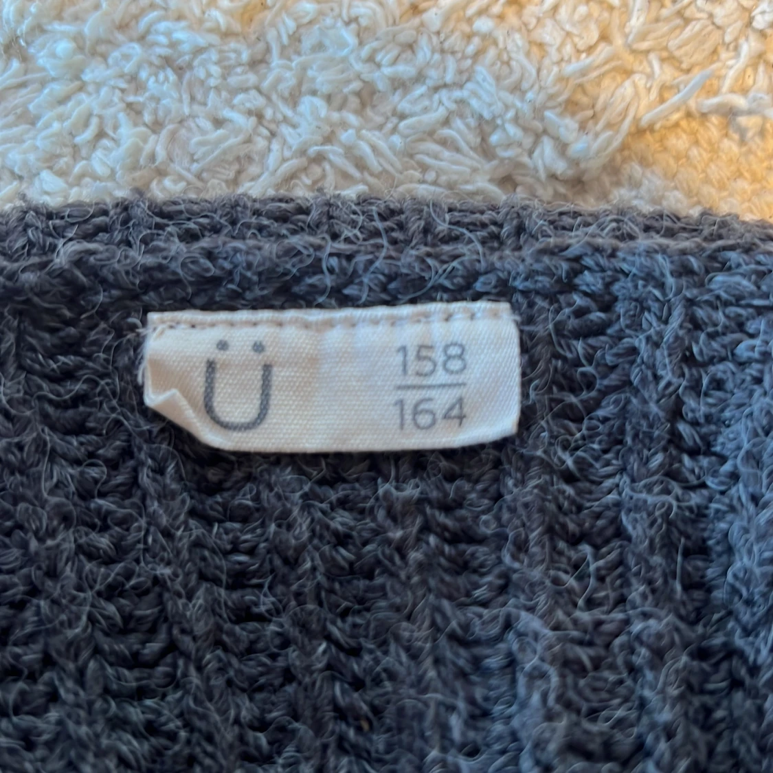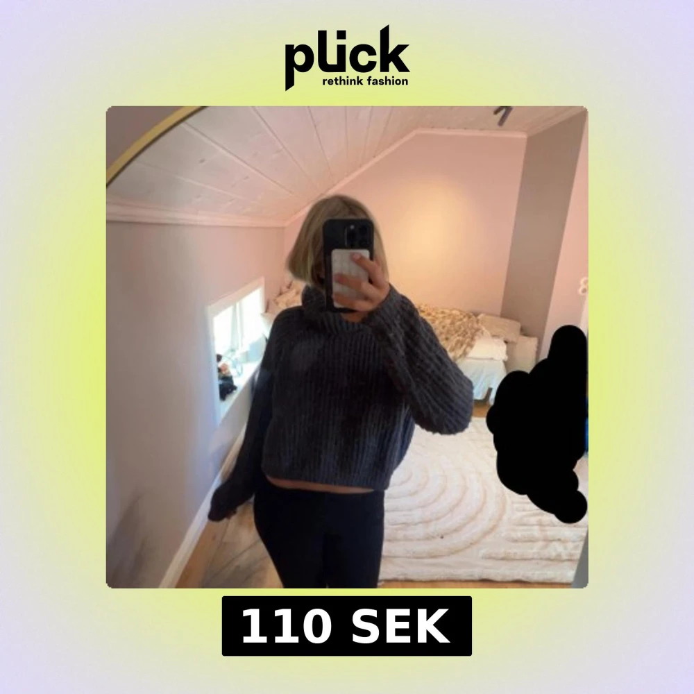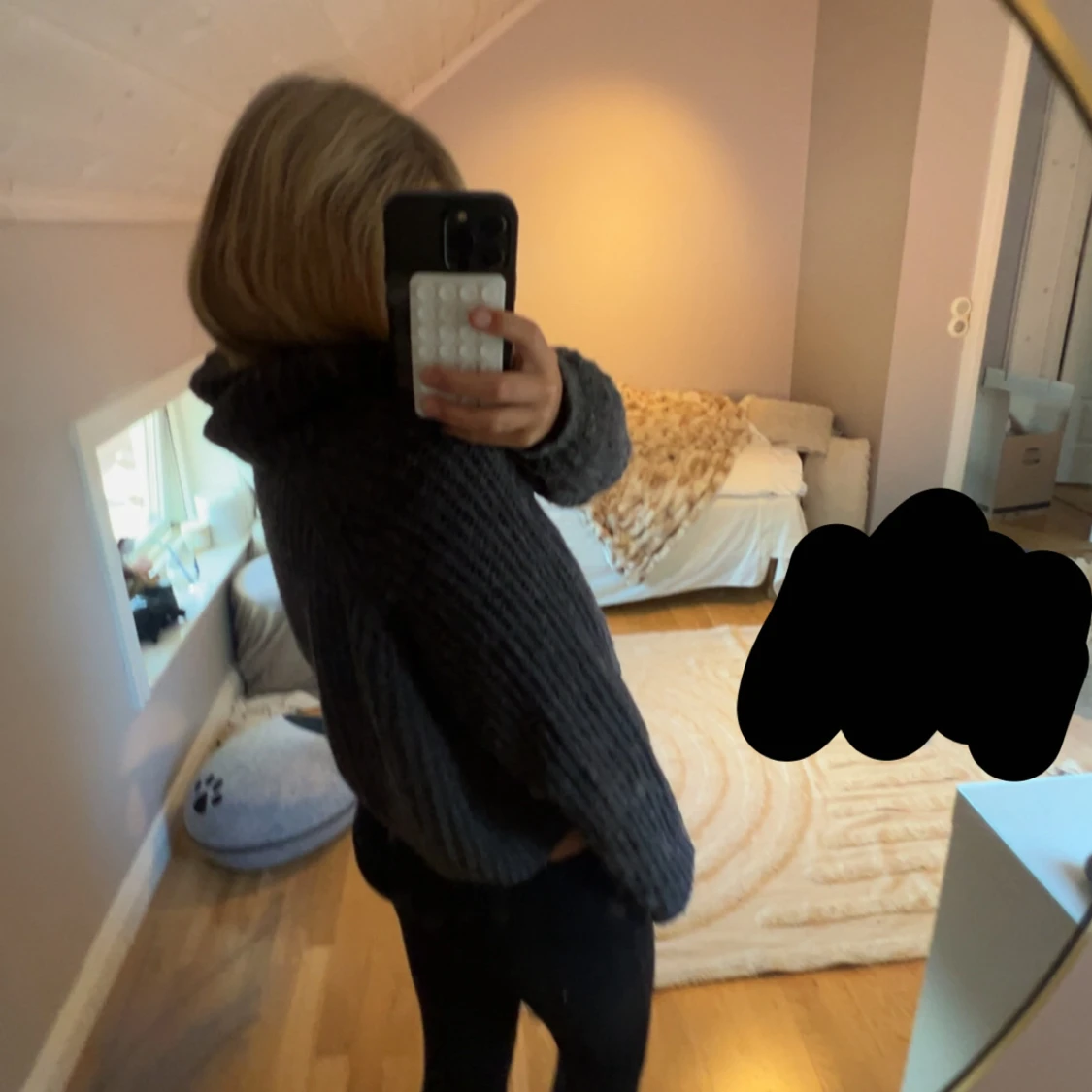 Mysig mörkgrå stickad tröja från Ü med croppad passform och bred polokrage. Väldigt skön på vintern/höst