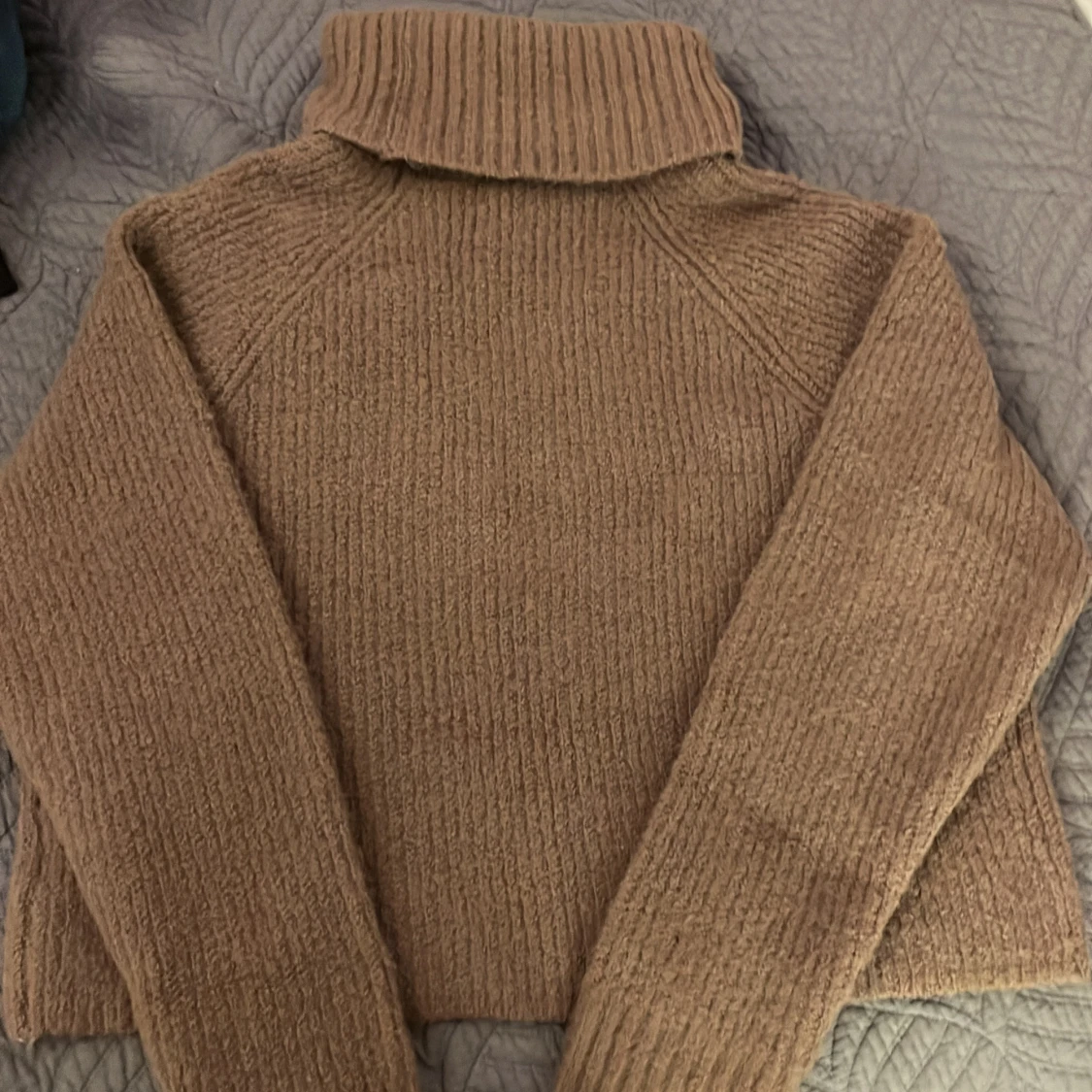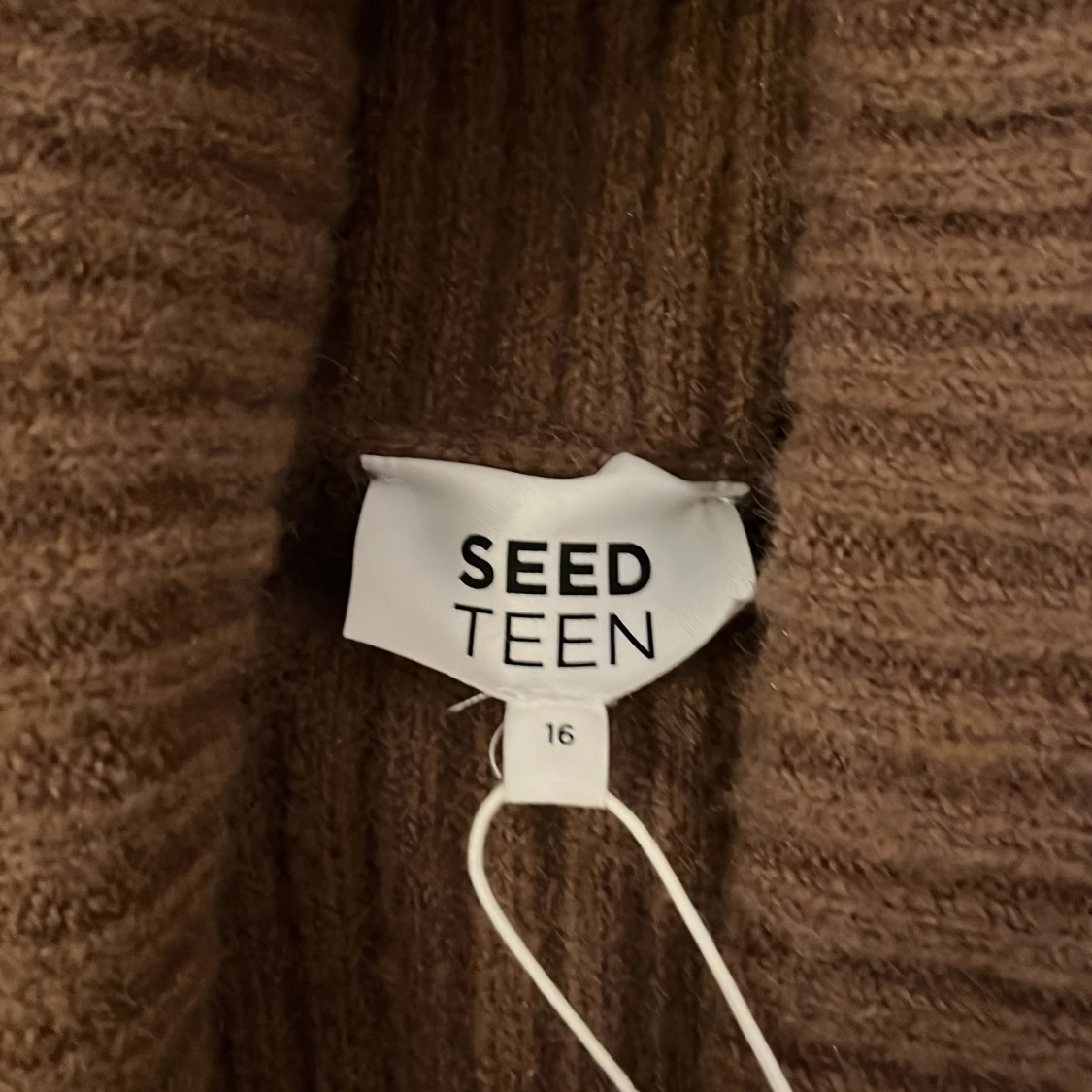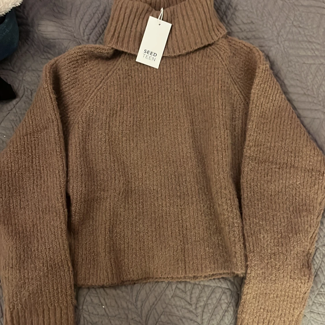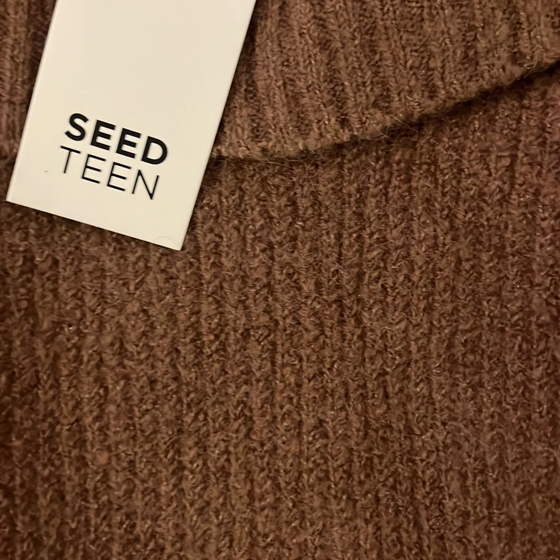 Säljer en mysig brun stickad polotröja från Seed Teen. Tröjan har en croppad design med långa ärmar och en hög polokrage. Perfekt för kyliga dagar och ger en stilren look. 🌟