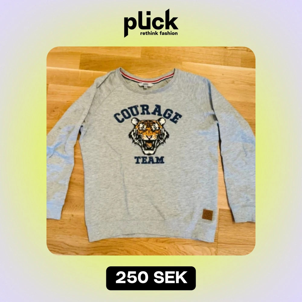En grå tröja med tiger huvud. Bra skick använd några gånger. För mer information och bilder kontakta mig.