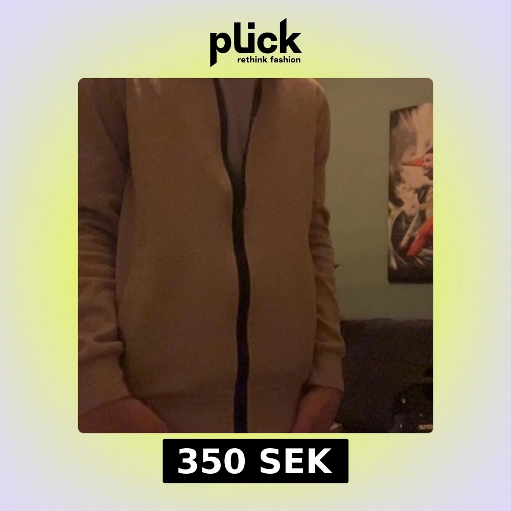 Säljer en beige huvtröja med dragkedja och långa ärmar. Perfekt för en avslappnad stil. Tröjan har en enkel design med en bekväm passform.