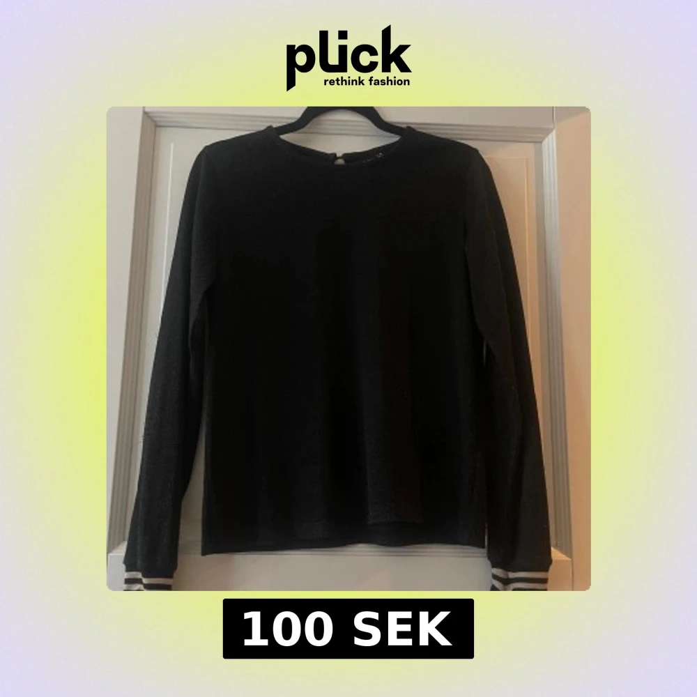 Säljer en svart långärmad topp från Petit by Sofie Schnoor med glittrigt material. Enkel och stilren design med rund halsringning och liten knapp i nacken. Perfekt för dig som vill ha något lite extra till outfiten. I bra skick💕