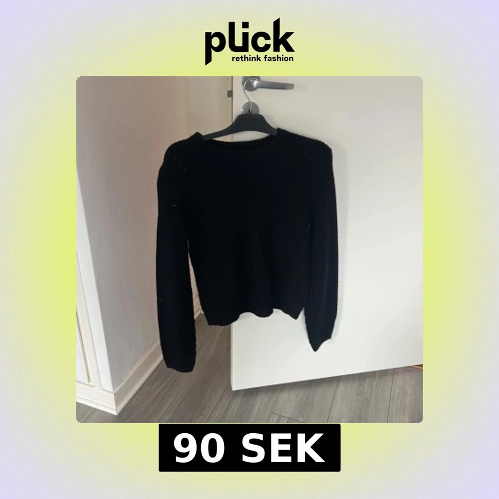 En svart stickad tröja med snygg struktur och rund halsringning. Tröjan har långa ärmar och ett diskret mönster i stickningen som ger en cool och stilren look. Perfekt att slänga på sig när det är kyligt ute.