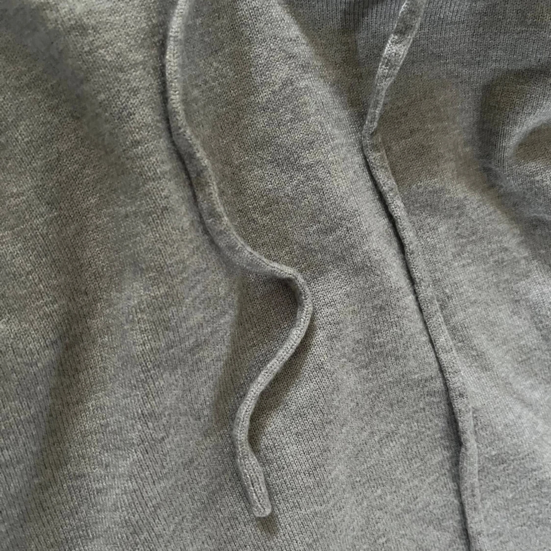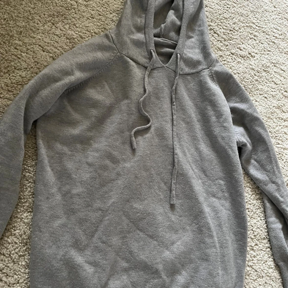 Mjuk och enkel grå hoodie med huva och snörning framtill. Stickad känsla och ribbade muddar vid ärmslut och nederkant. Perfekt för chill dagar och när du vill ha något bekvämt och stilrent.