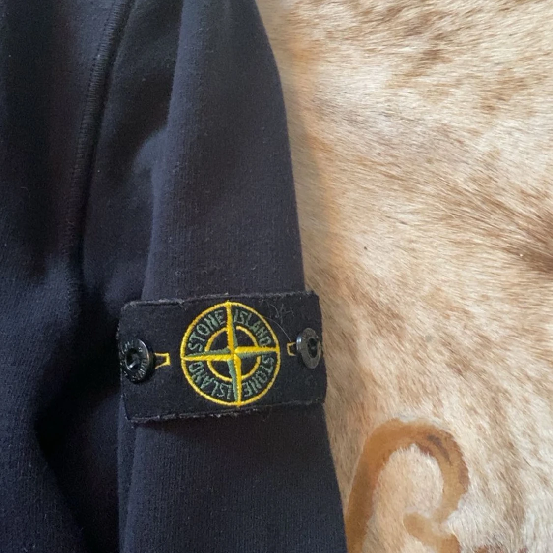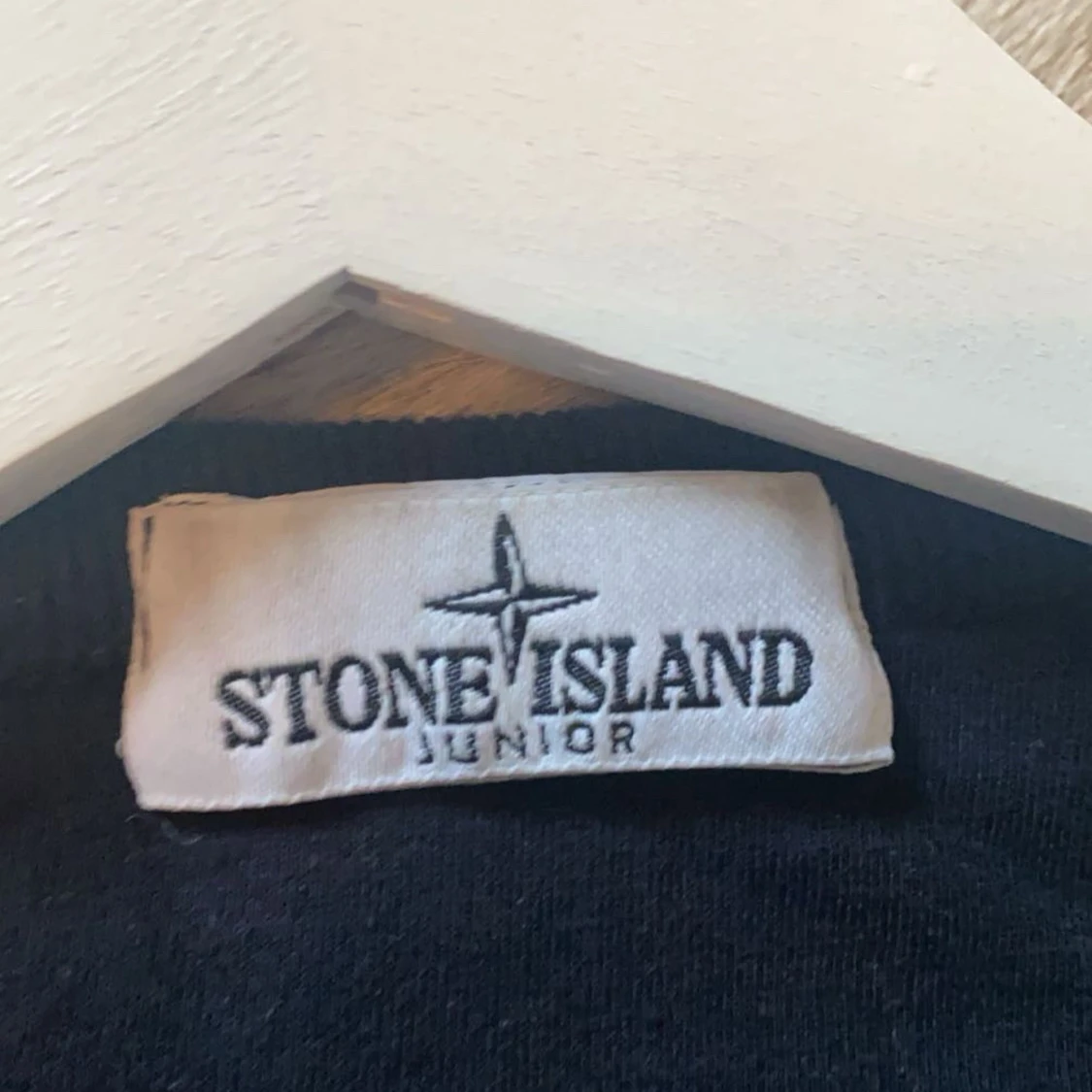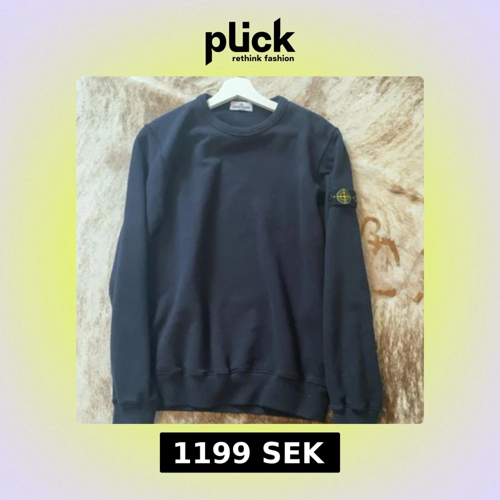 Säljer en stilren svart tröja från Stone Island Junior. Tröjan har långa ärmar och ett ikoniskt märke på ärmen. Perfekt för en casual look.