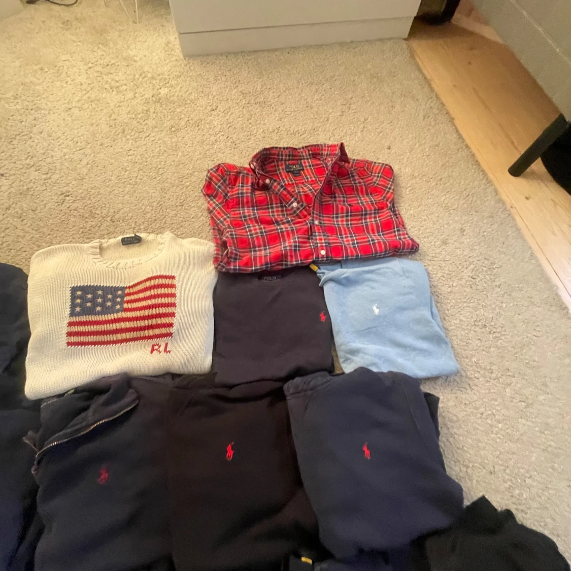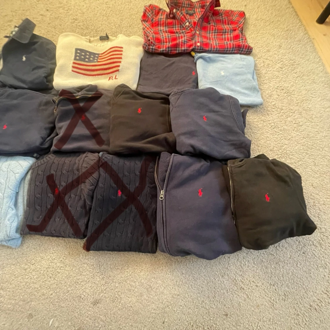 Säljer 12 st Ralph Lauren tröjor. Jag har 1 cabbelstickad, 3 Ralph Lauren zip, 2 Ralph Lauren sweatshirt, 2 Ralph Lauren hoodies, 1 exklusiva usa Ralph Lauren tröja, 2 Ralph Lauren lättare sweatshirt och en skjorta. Alla plag är i bra skick. Går att köpas styck viss. Storlekarna går från xs till S .Skickar samma dag eller dagen efter plaget har köpts. Skriv till mig vid frågor eller om du vill ha mer bilder. 💛🤝 obs 449kr styck usa tröjan kostar 699
