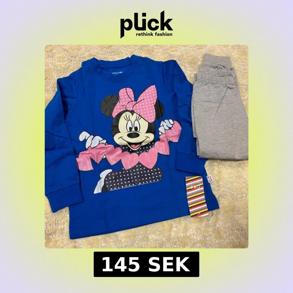 Söt blå långärmad tröja från babyGAP med ett stort Musse Pigg-motiv. Perfekt för små barn som älskar Disney. Tröjan är gjord i mjukt material och har en lekfull design med rosa och svarta detaljer. 100% bomull, 145kr/2 delar/ paket, finns 2-7 år kvar