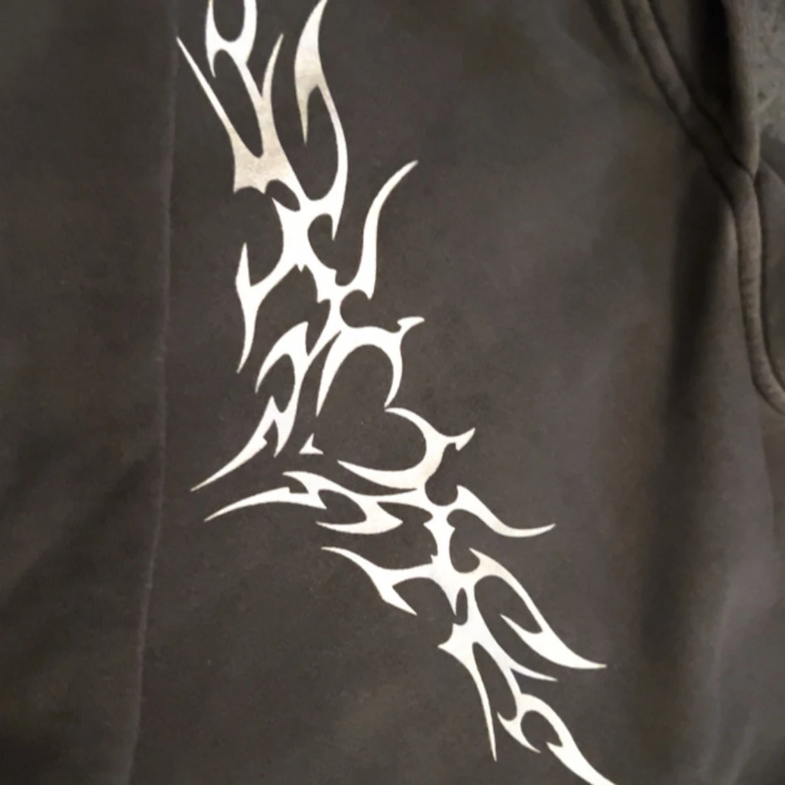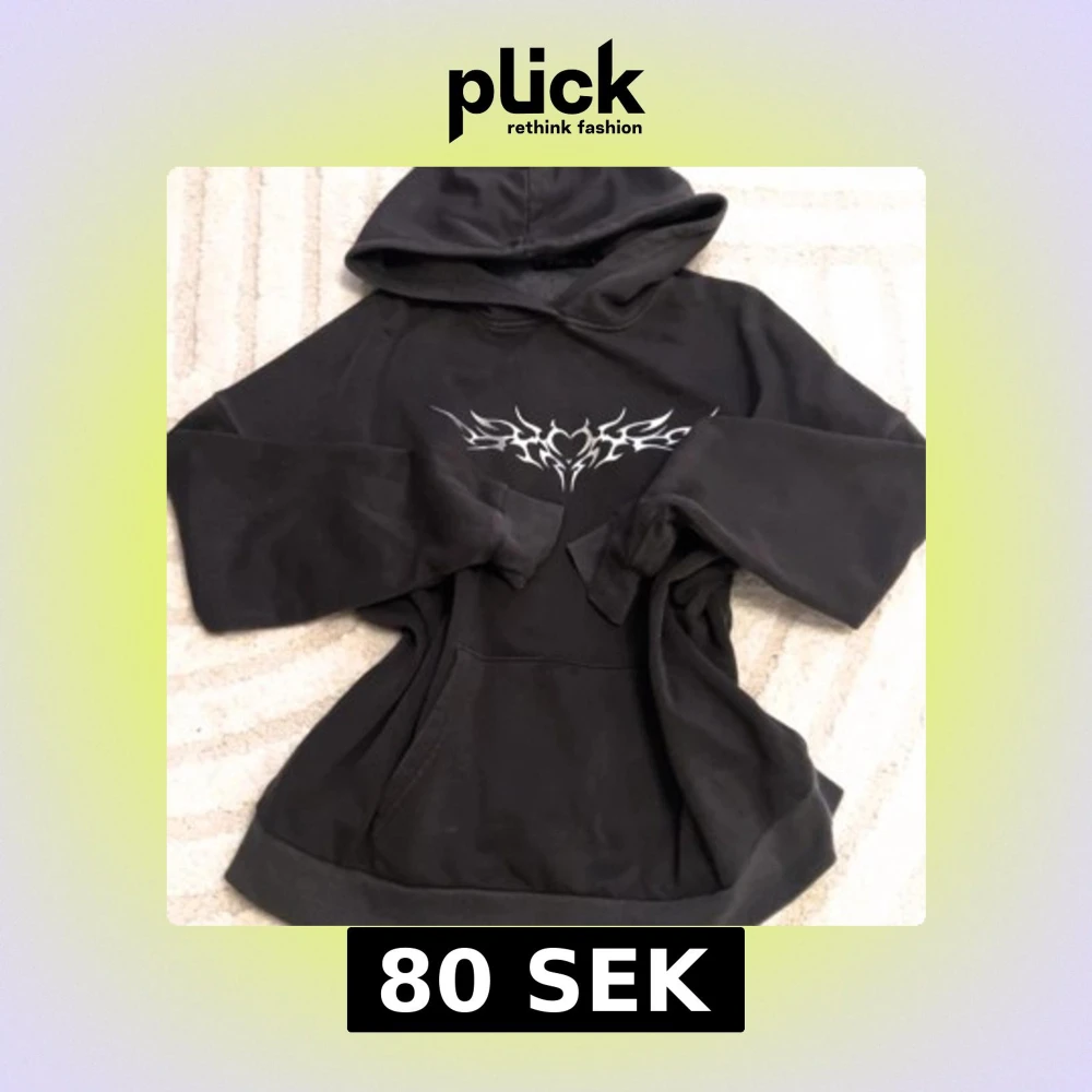 Snygg svart hoodie med ett coolt vitt tribaltryck på bröstet. Perfekt för en avslappnad stil. Hoodien har en stor ficka framtill och en bekväm huva.