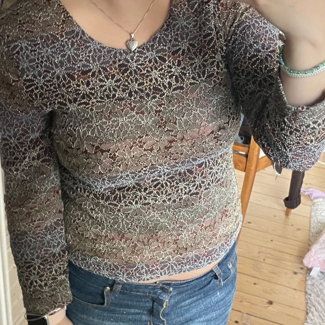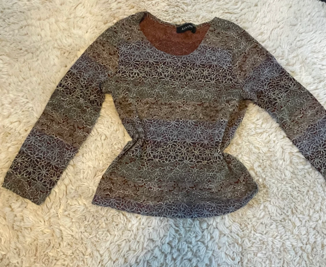 Superfin långärmad tröja med blommönster som skimrar lite i ljuset.
