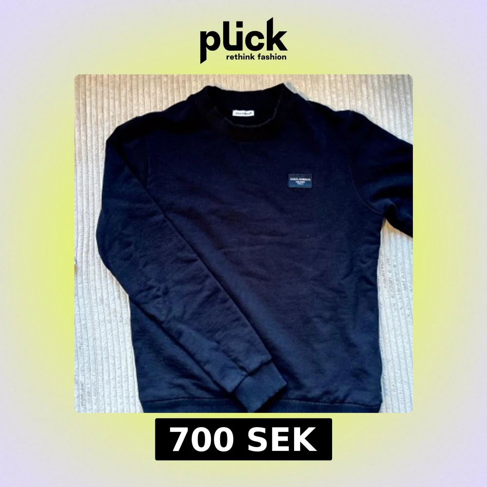 Säljer en svart sweatshirt från Dolce & Gabbana med rund halsringning och ribbade muddar. Tröjan har en diskret logotyp-patch på bröstet och är tillverkad i mjuk bomull. 100% äkta. Köpt på NK. Sparsamt använd. Storlek 164 - 170 smal passform.