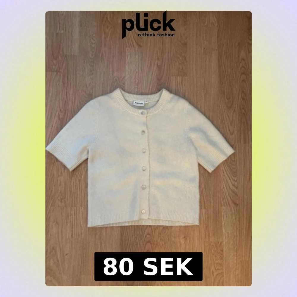 Kortärmad kofta i mjuk, krämvit stickad kvalitet från Kappahl. Rund halsringning, ribbade kanter och knäppning framtill med matchande knappar. Perfekt för lager på lager och enkel att styla till olika looks.