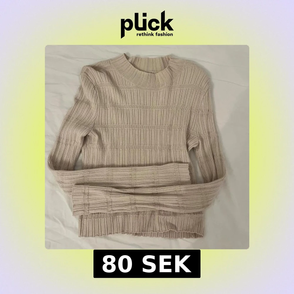 Säljer en stilren beige ribbad tröja med långa ärmar.