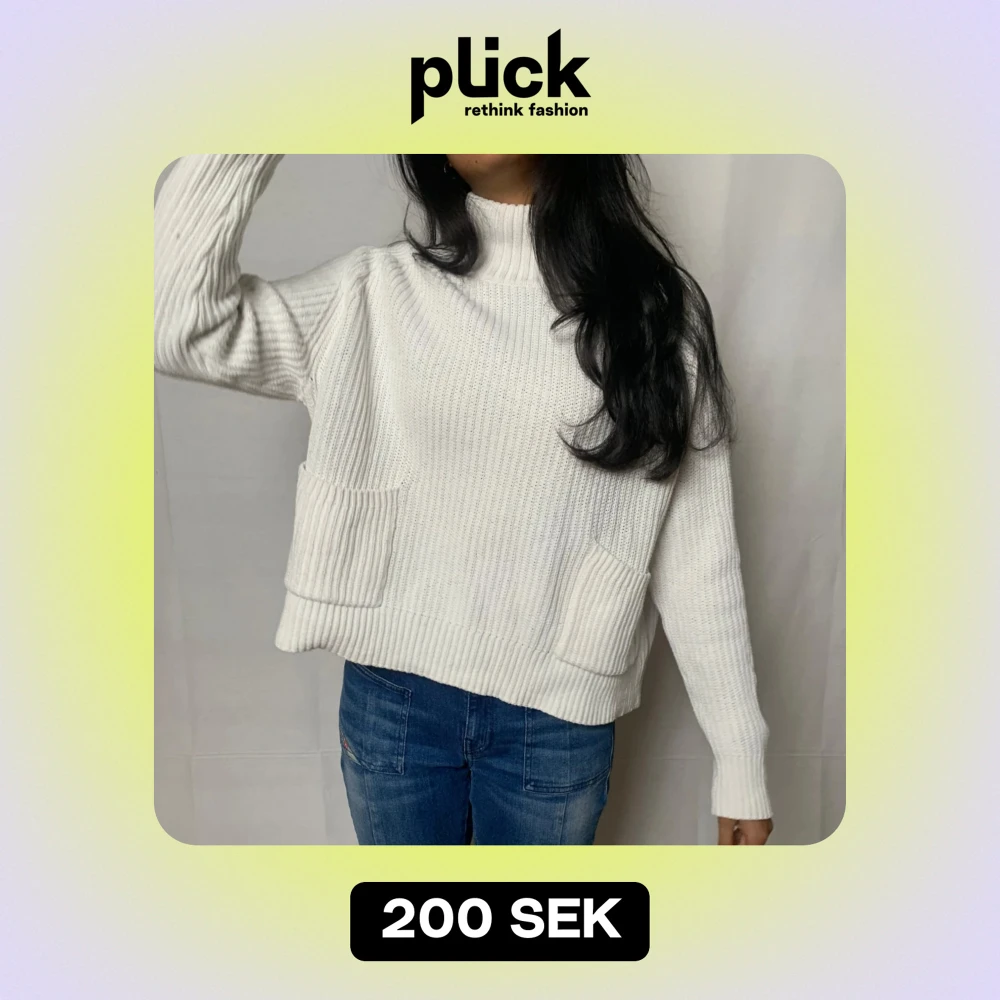 Superfin vit stickad tröja med en unik öppen ryggdetalj och fickor på framsidan!