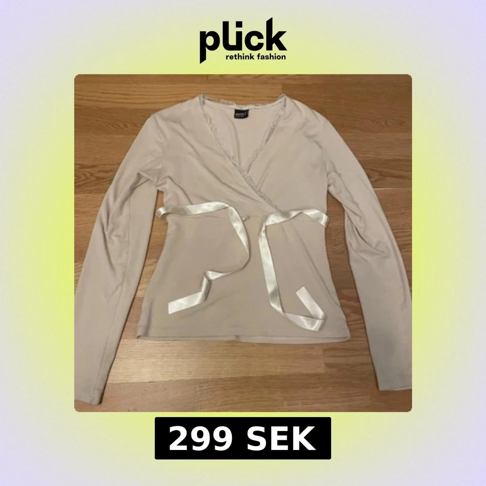 Säljer en elegant beige omlottopp från Zentex med långa ärmar och spetsdetaljer vid halsen. Toppen har ett knytband i satin som ger en fin passform. Perfekt för en stilren look.