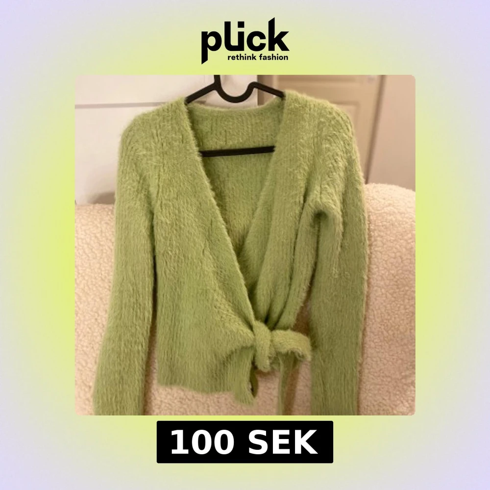 Säljer en mysig grön kofta med knyt framtill. Den har en fluffig textur och långa ärmar, perfekt för kyligare dagar. Koftan är både stilren och bekväm, ett måste i garderoben! 💚