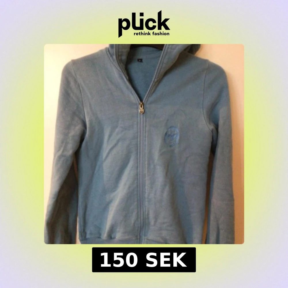 Säljer en ljusblå hoodie med dragkedja framtill och broderad detalj på bröstet. Tröjan har långa ärmar och är tillverkad i ett mjukt material som känns skönt mot huden. Perfekt för en avslappnad stil.