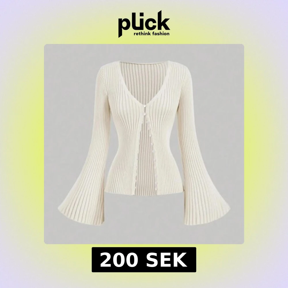 Pris kan diskuteras! Supersnygg ribbad kofta i ljus beige med v-ringning och knappar framtill. Tröjan har långa, utsvängda ärmar och figurnära passform som ger en trendig siluett. Perfekt för dig som gillar stilrena och moderna plagg.