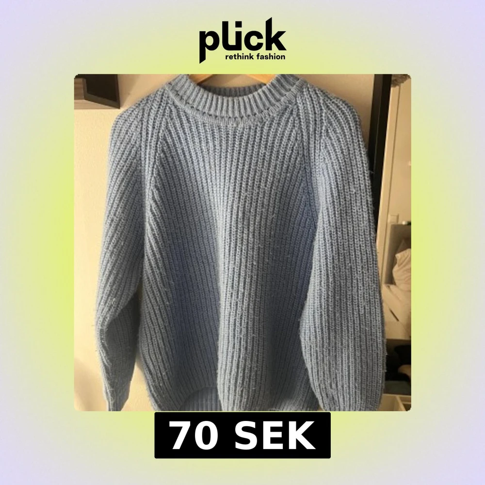 Säljer en mysig ljusblå stickad tröja med grov ribbad struktur och rund hals. Tröjan har långärmade ärmar och en relaxed passform som är perfekt för kyliga dagar. Enkel och stilren design som är lätt att matcha med jeans eller kjol.