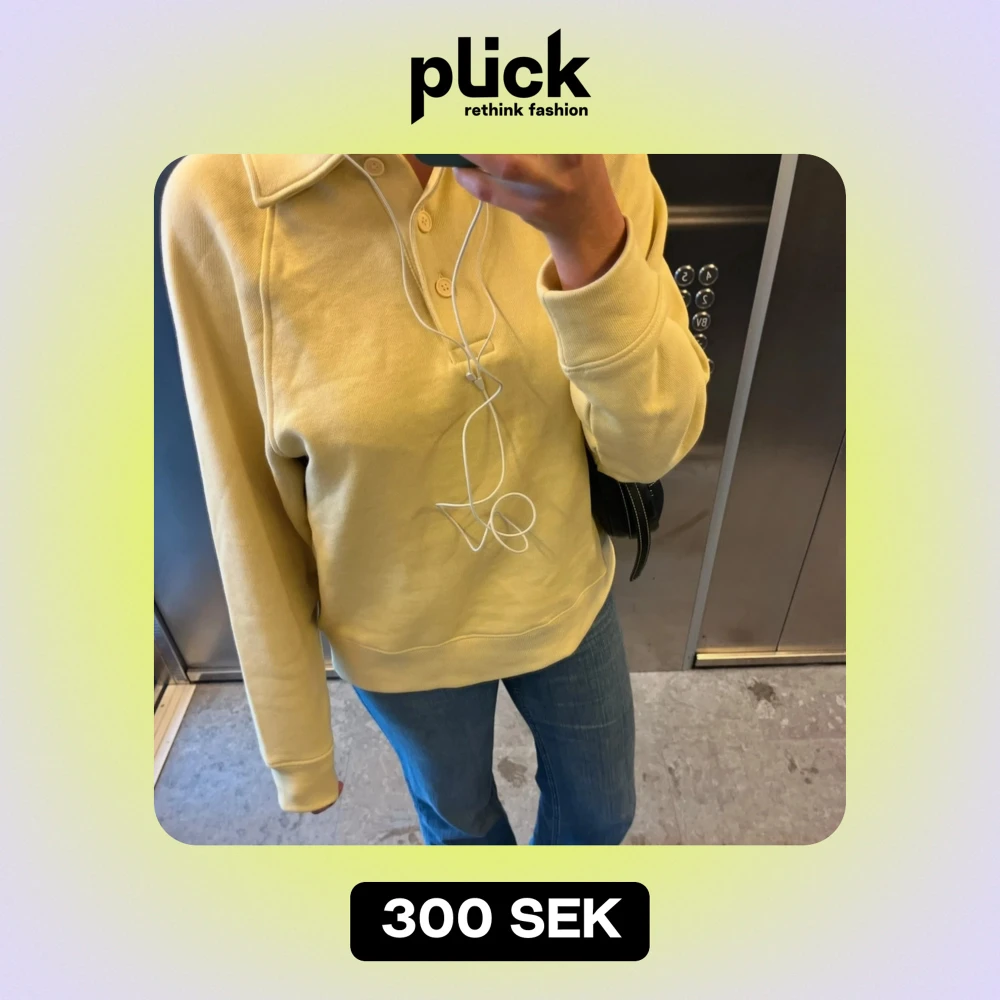 Säljer en snygg gul sweatshirt med krage och knappar framtill💛🤍. Tröjan har långa ärmar och en avslappnad passform💛💛PRIS KAN DISSKUTERAS💛💛Nästintill oanvänd