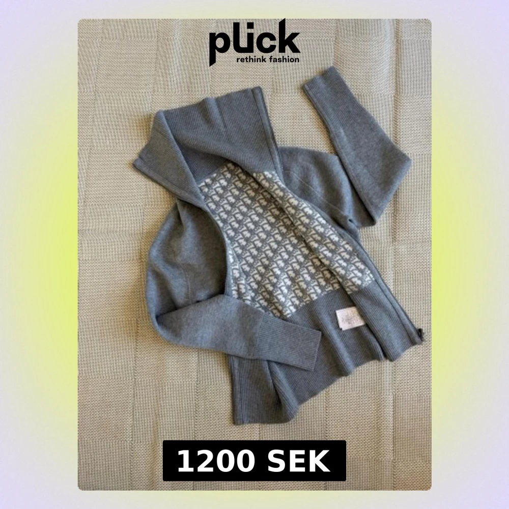 Snygg grå kofta med dragkedja och ribbade muddar. Insidan har ett unikt vitt och grått mönster som ger extra stil. Perfekt för att hålla sig varm och se cool ut. Materialet känns mjukt och bekvämt, och koftan har hög krage.