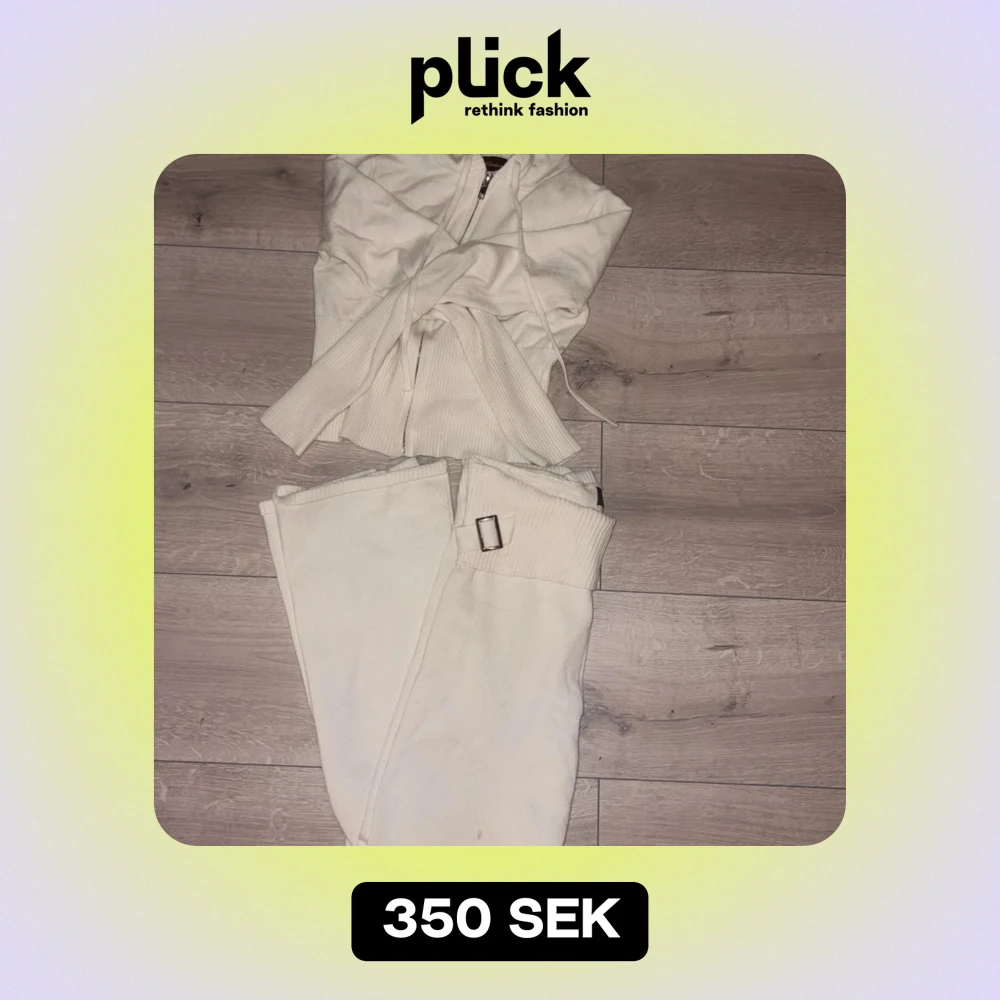 Säljer en vit ribbad hoodie och byxa från Catania. Hoodien är croppad med dragkedja och har långa ärmar. Byxan är en man kan vika. Nypris 1500. Den har en liten fläck på byxan som knappt syns och säljes pga ingen användning. Pris kan diskuteras 💗 storlek small!