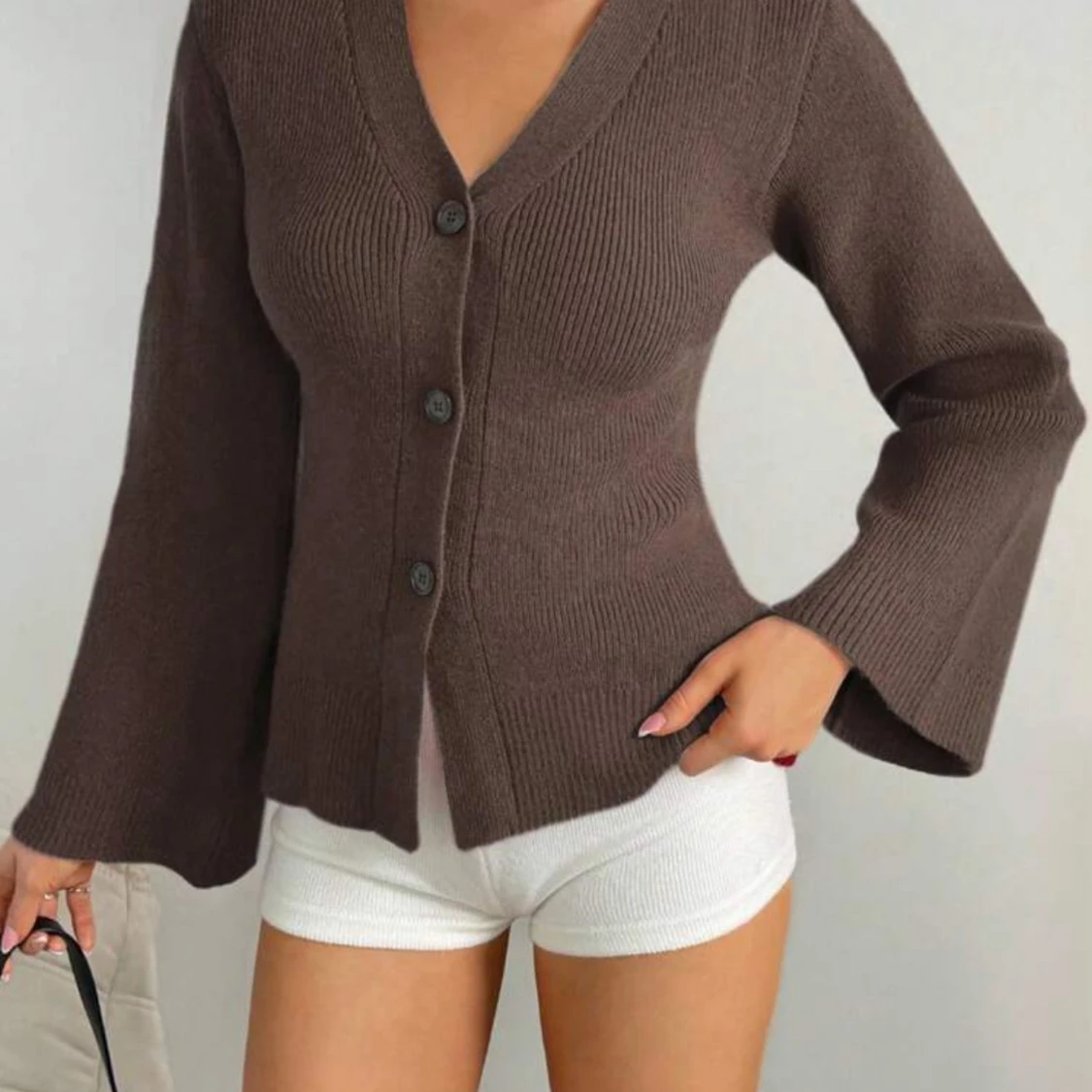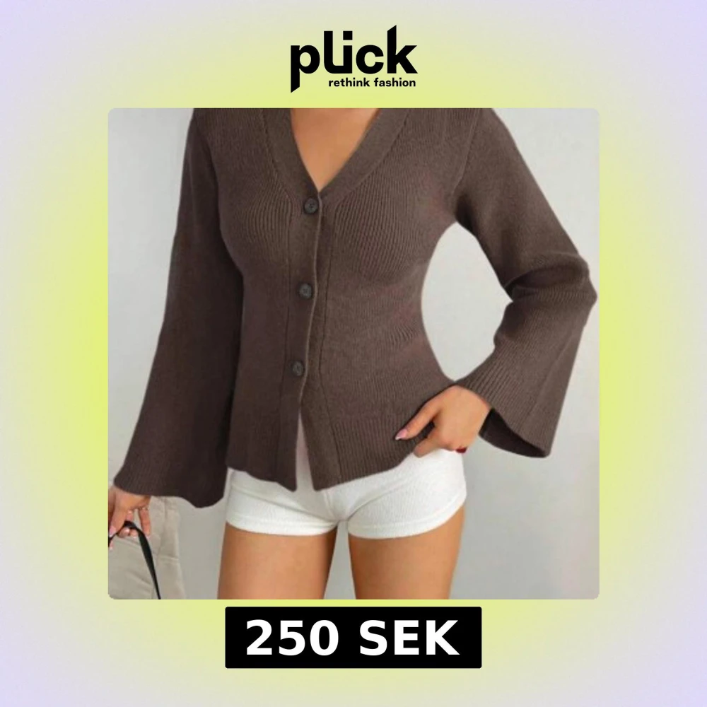 Pris kan diskuteras Säljer en brun stickad kofta med v-ringning och stora knappar framtill. Koftan har vida, långa ärmar och en figurnära passform upptill. Perfekt för lager-på-lager och chill dagar.