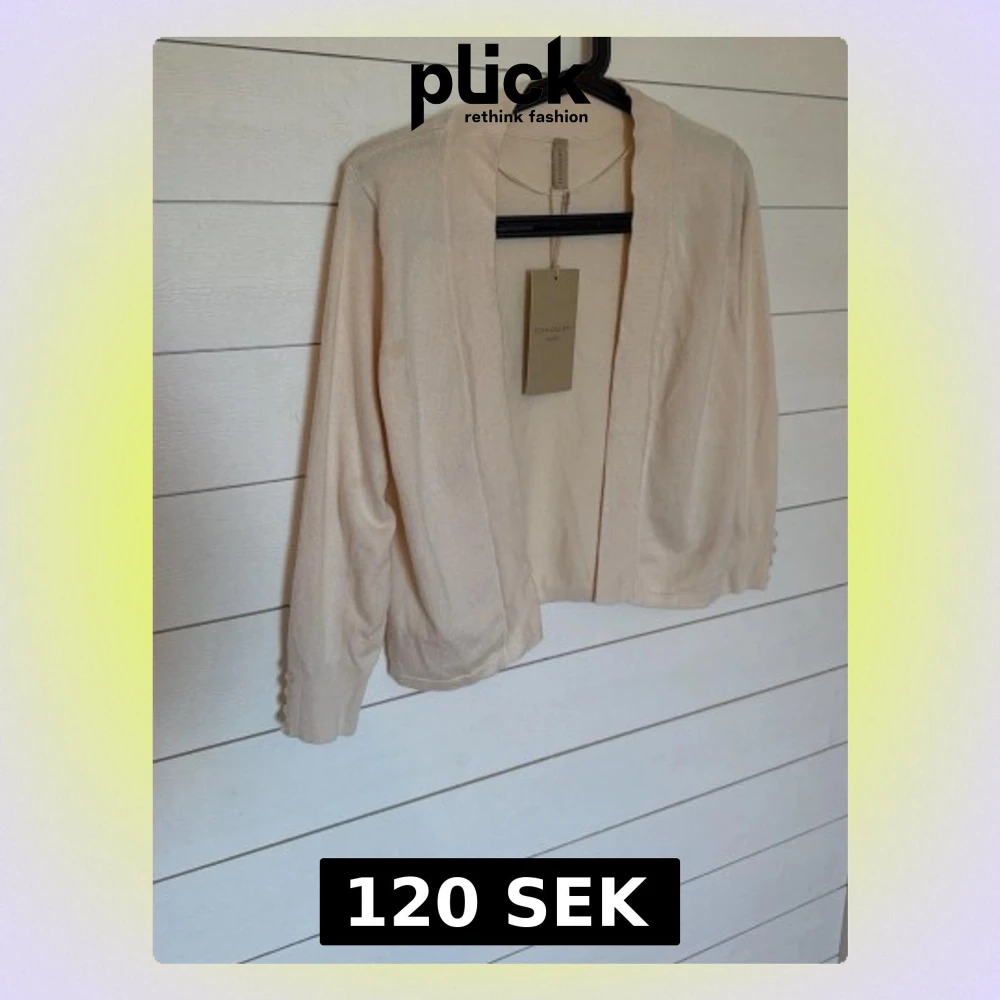 Helt ny: Snygg beige kofta från MyEssential Wardrobe med öppen front och långa ärmar. Enkel och stilren design som passar perfekt till lager-på-lager-look. Mjukt och tunt material som känns skönt mot huden. Perfekt för vår och sommar.Mindre defekt se bild 7.